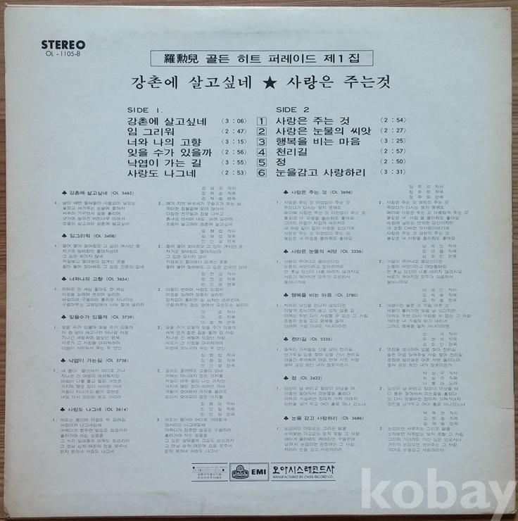 | 자켓상태 | EX : 약간의 마모, 모서리 찢김 존재 | 음반상태 | EX : 재생에 영향 없는 가벼운 기스 존재 | 발매정보 | 초반 | 가사지여부 | 유 |