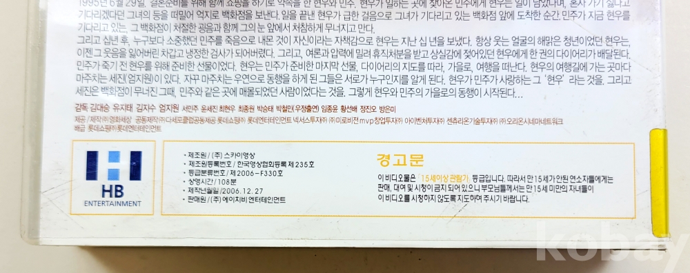 상 태 | 재생여부 확인 불가 및 재생상태 확인 안함. 간혹 보이는 비디오테이프에 발생한 곰팡이들은 세월의 흔적으로 필요하시면 관련업체에 의뢰하시어 세척을 하셔야 합니다. 단, 흰색곰팡이는 리와인드로 한번 돌려주면 제거가 가능하나 검정색곰팡이는 세척을 하여도 화면재생이 안됩니다. 그래서 각각의 비디오테이프의 오염상태를 사진으로 올리오니 보시고 참고하여 주시고 상태가 안좋은 것은 화질의 질을 떠나 비디오테이프 그 자체의 존재에 소장 의미를 부여하시는 분들만 입찰하여 주시길 권유합니다. 부득이 반품신청시 사전에 판매자에게 미리 연락주시기 바랍니다. 비디오테이프는 재생하는 기계의 상태에 따라 화질이 다를 수 있는 등 분쟁의 소지가 많은 품목입니다. 사전 연락없이 반품신청시에는 입찰제한자로 등록하겠습니다. 훼손 및 오염 정도(강,중,약,양호로 표시합니다.) - 케이스 & 삽지 : 약(미미) / 라벨 : 양호 / 테이프 : 양호 / 곰팡이 : 양호 |
