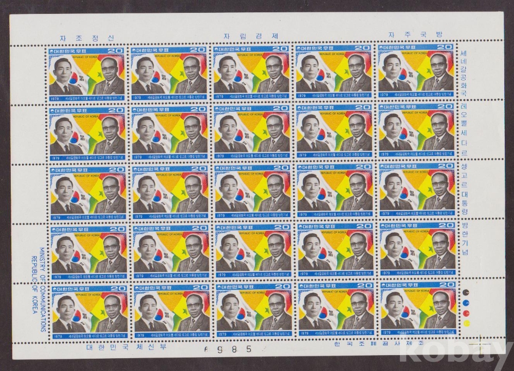 (한국전지) 1979.4.22 세네갈공화국 레오뿔 세다르 셍고르대통령 방한 sheet of 25 MNH