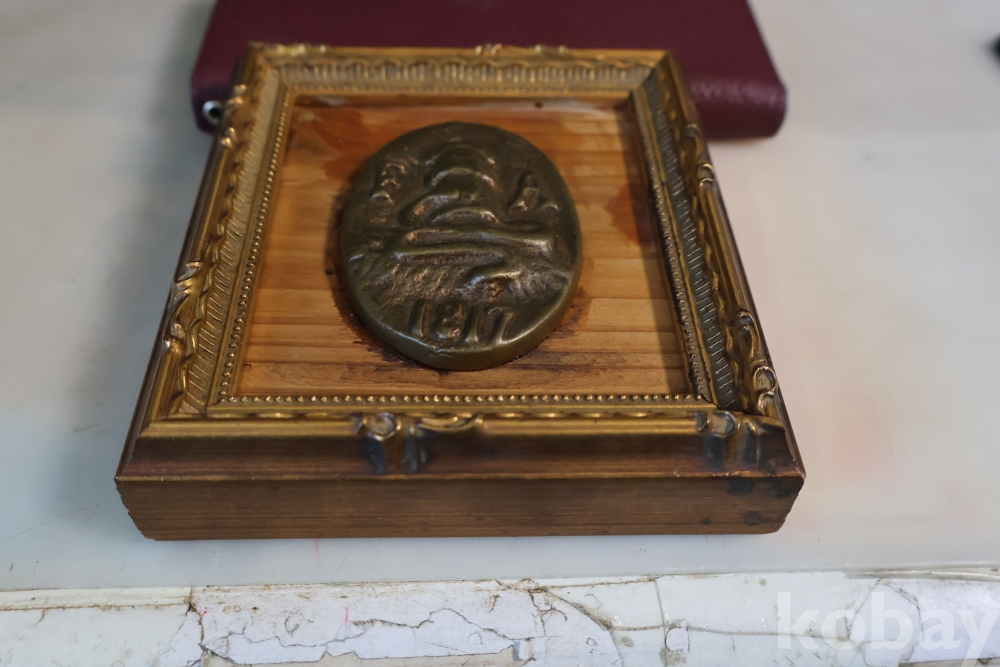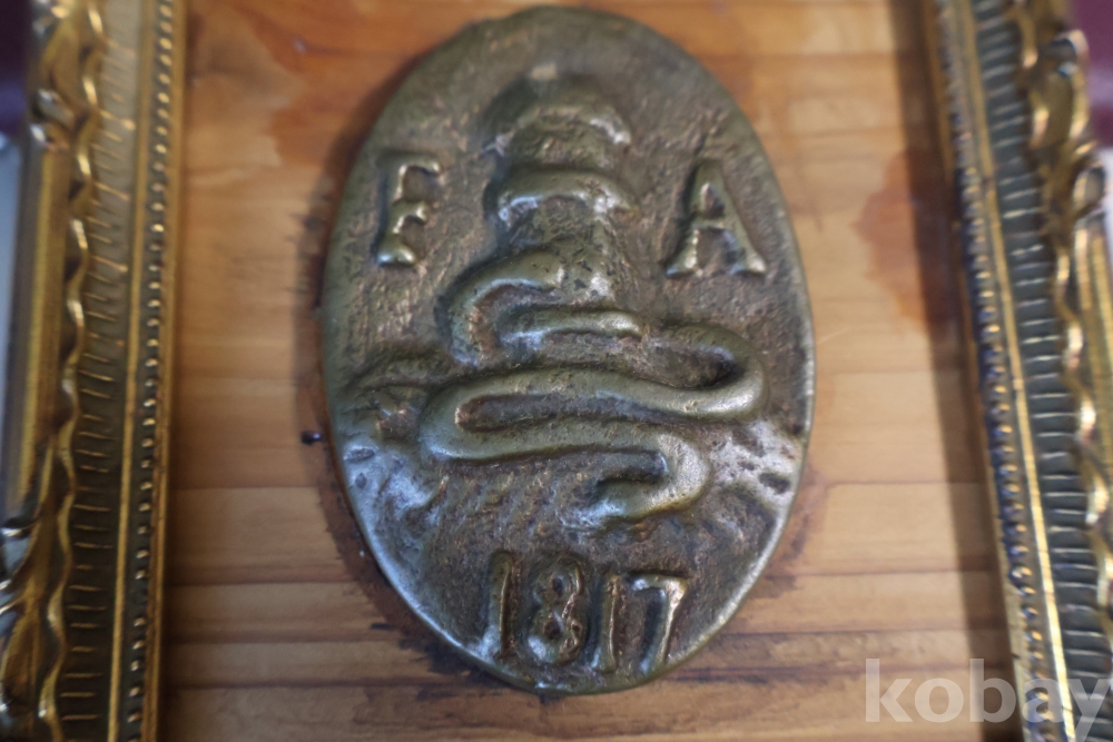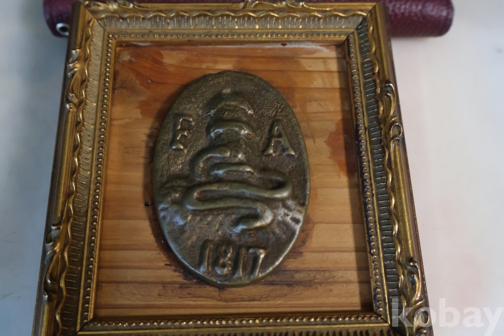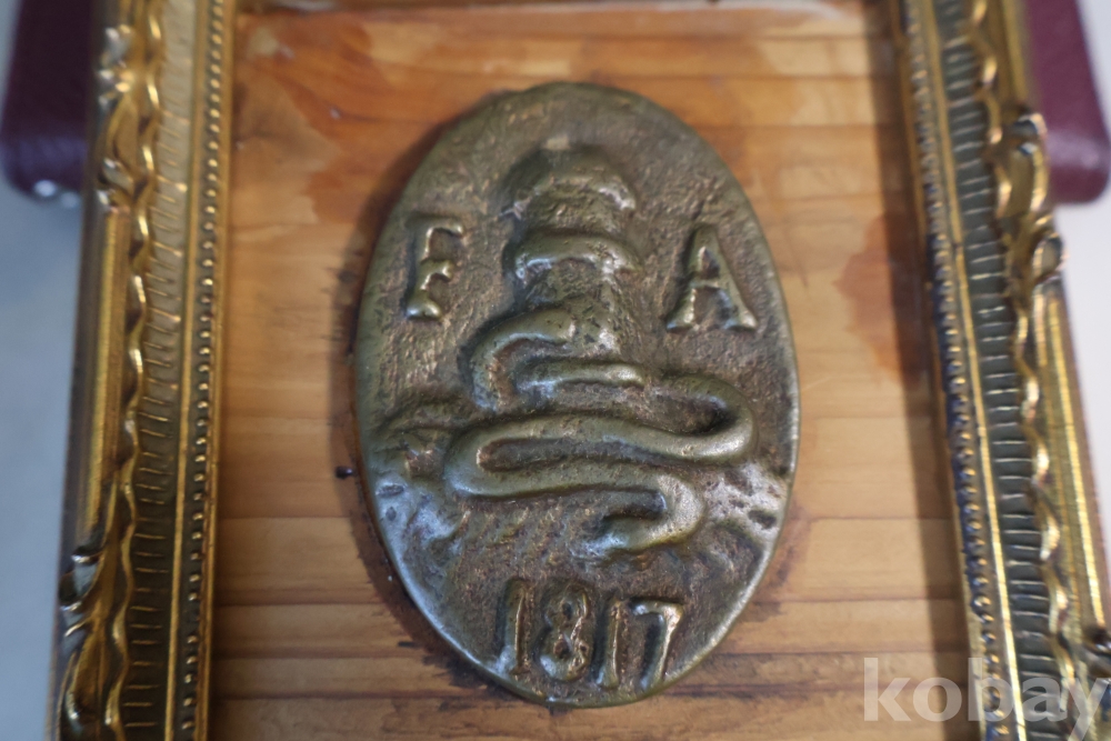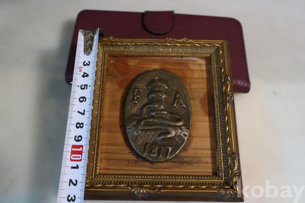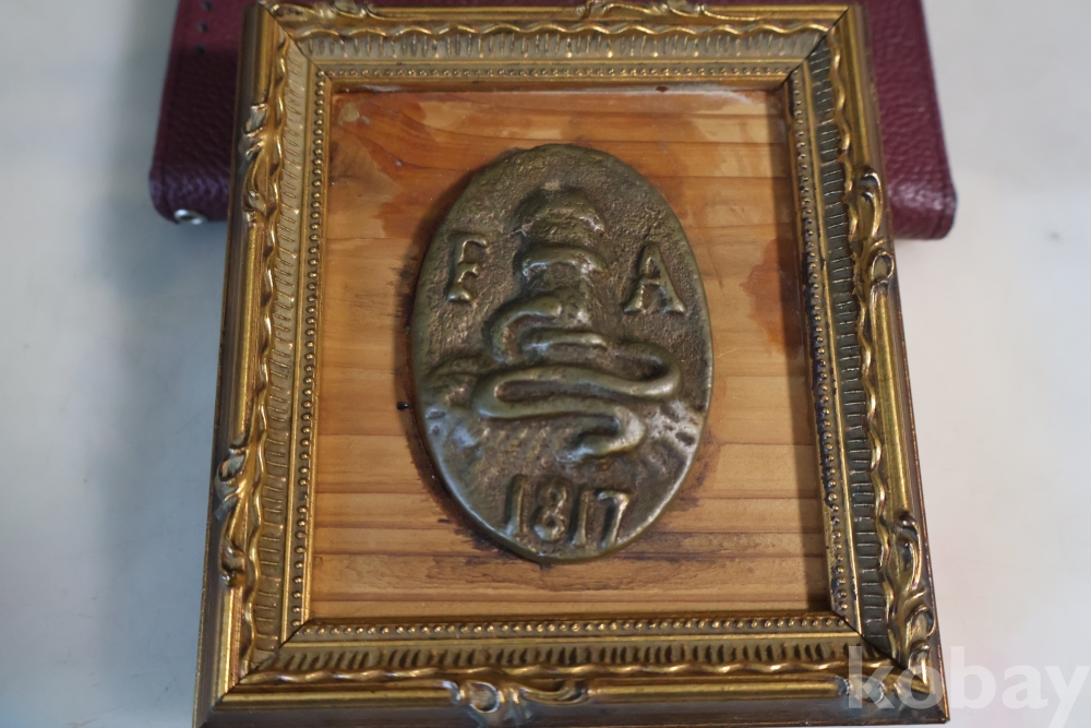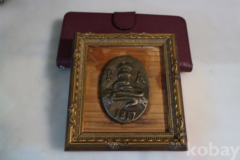 귀한 고미술 임니다 1817년 만든 청동 기념 메달임니다 소방호스가 보임니다 F A 의 낙관을 가진