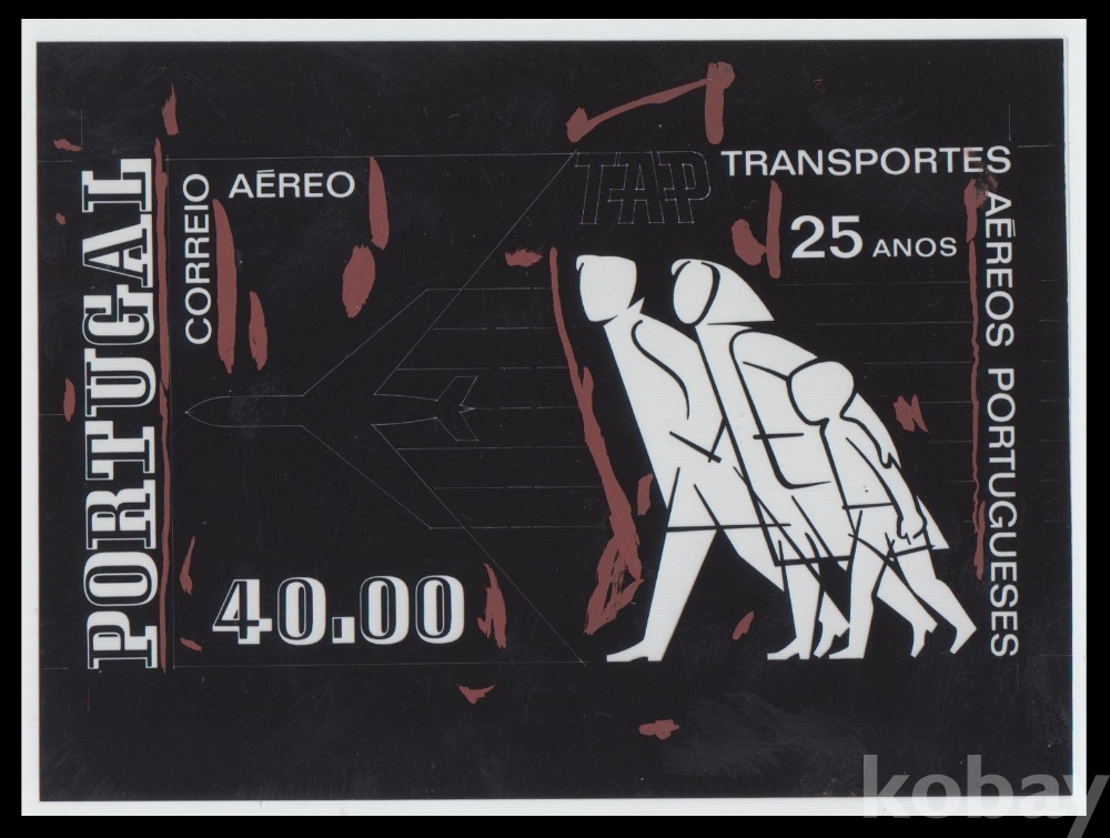 (하늘천) 포르투갈 1969년 TAP 에어라인 25주년, 항공기, 미발행 투명 프루프 1