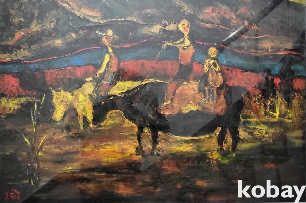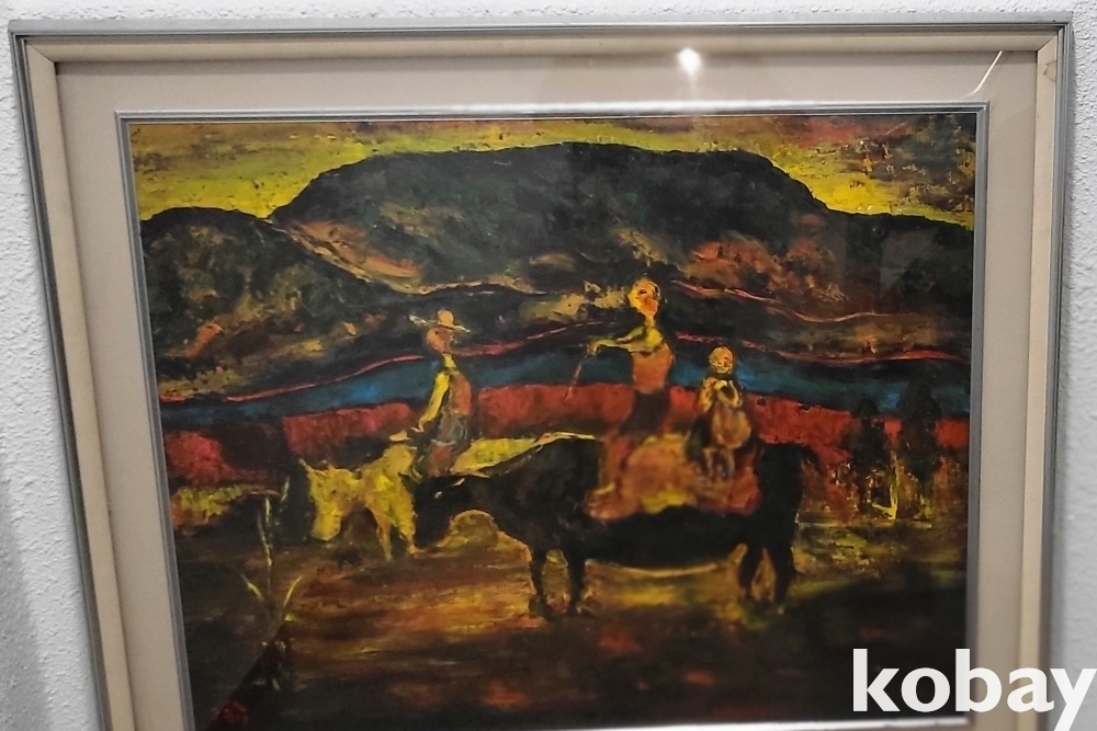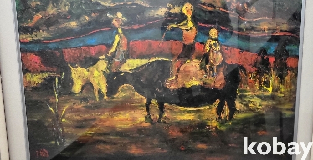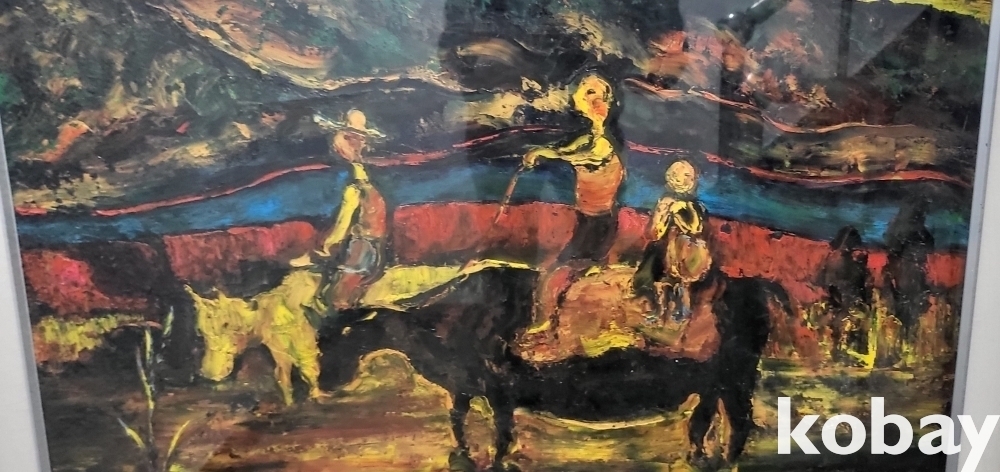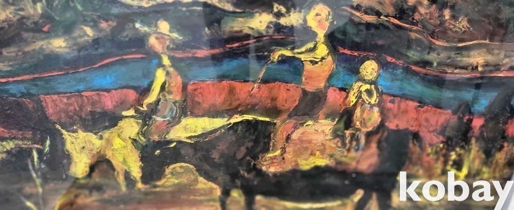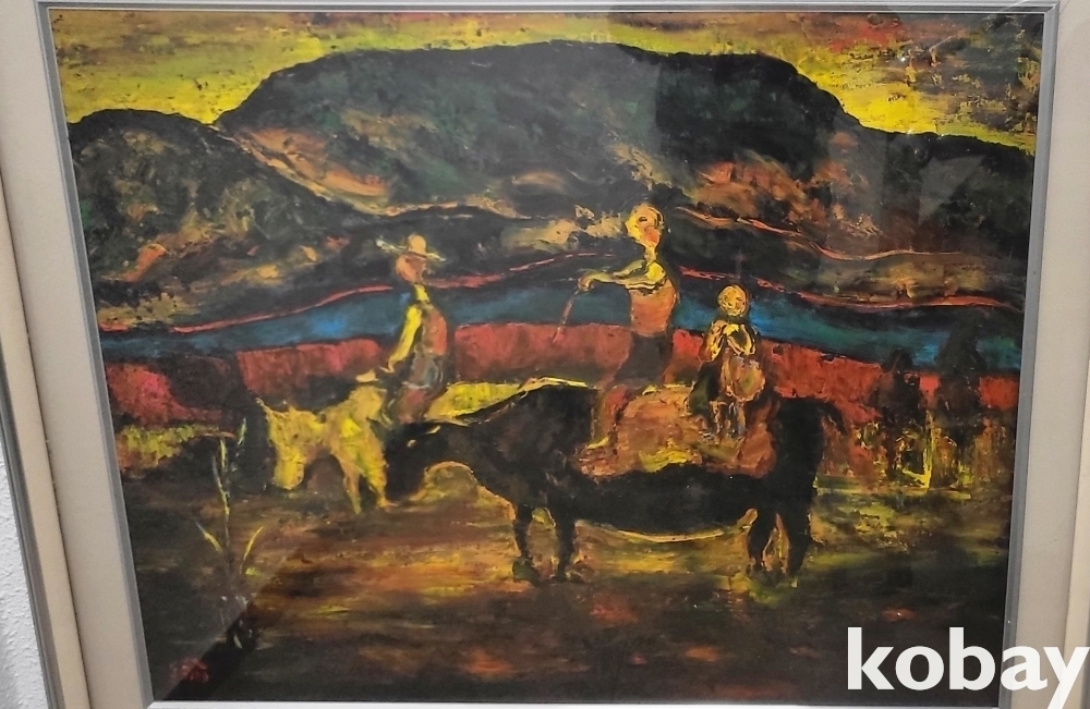 서양화가 황유엽 사인이 보이는 유화작품으로 황소와 목동으로 30호크기 입니다,