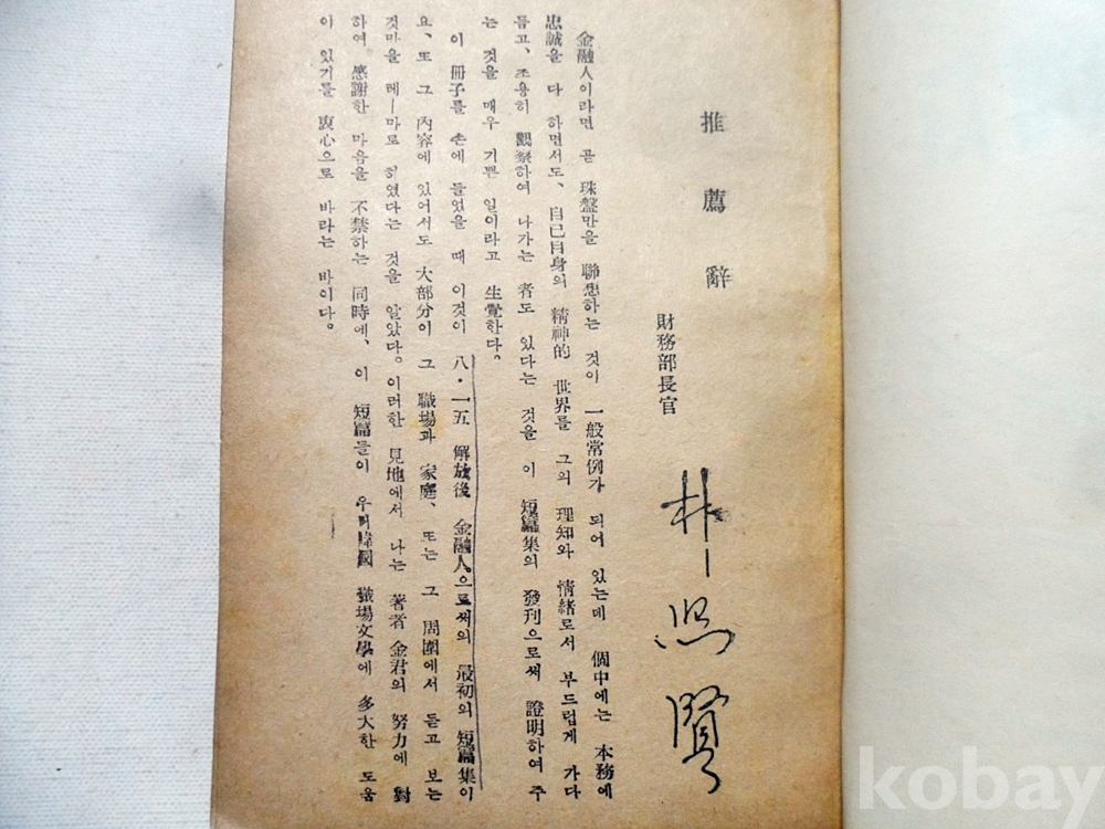 1953년 독초속에서 김안재 단편집 저자 싸인책