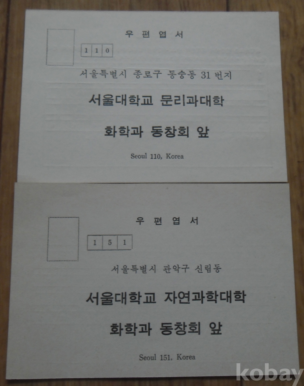우편엽서: 서울대 문리과대학 화학과동창회 2종