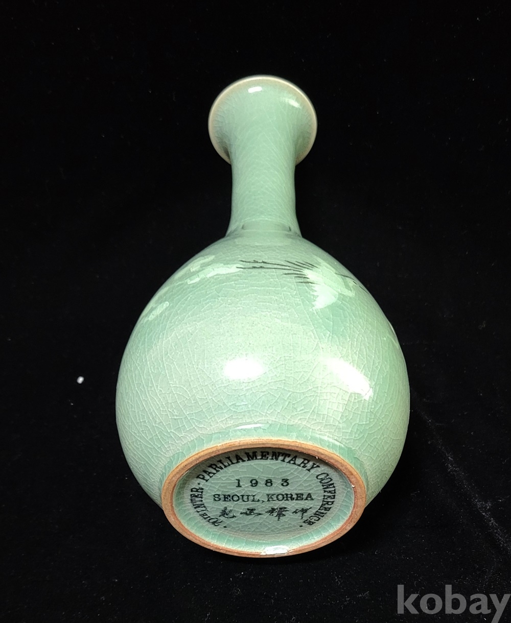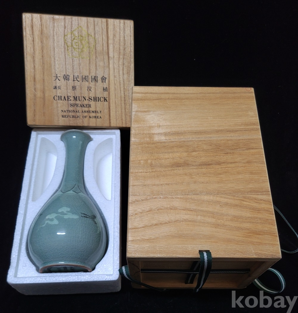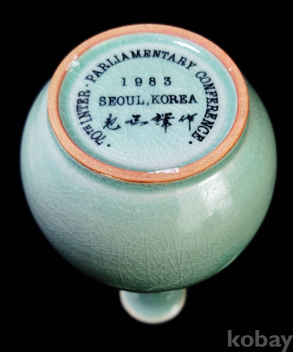 본 주병은 1983.10.4.-12 국제의원연맹(IPU) 제70회 서울 총회시 당시 대한민국 국회 蔡汶植 議長이 참석한 각국 국회의원 회원들에게 준 선물로 역사성 있고 청자를 세계에 알리는 희귀품입니다.