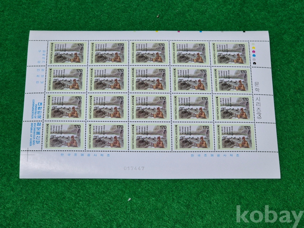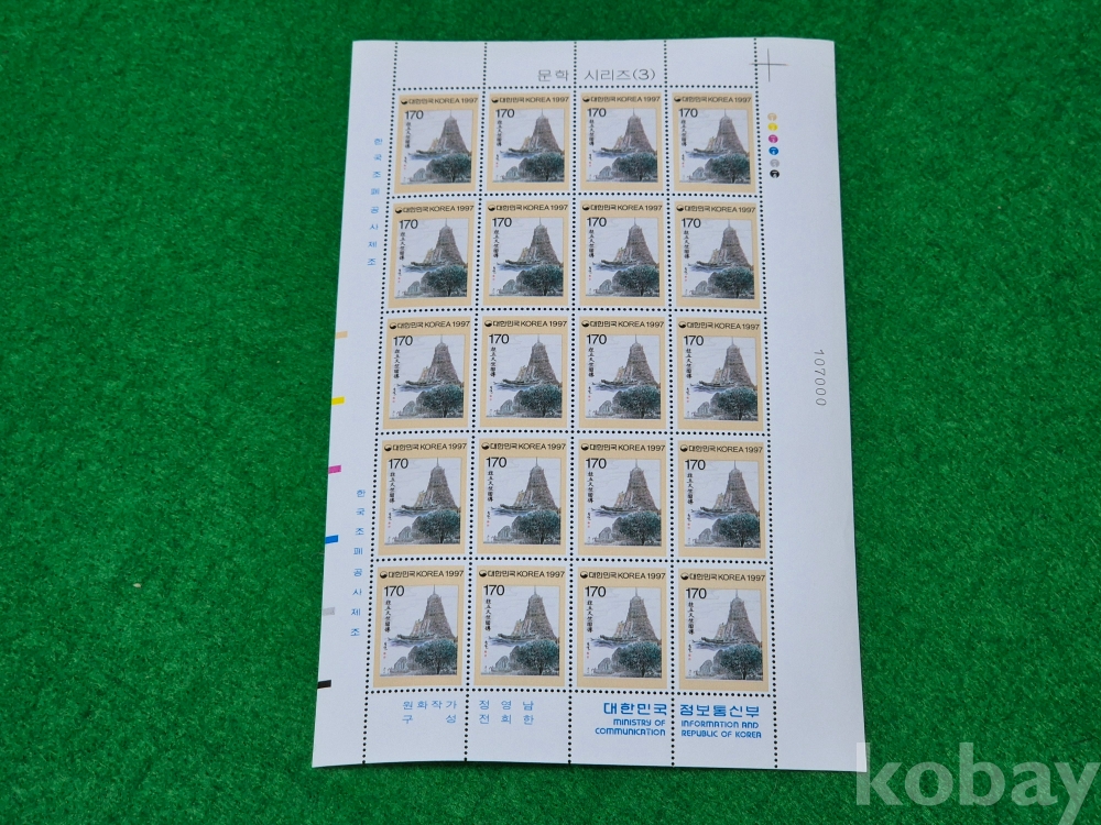 1]. 품명 : '97 문학시리즈 제 3집 우표 전지 각 2매