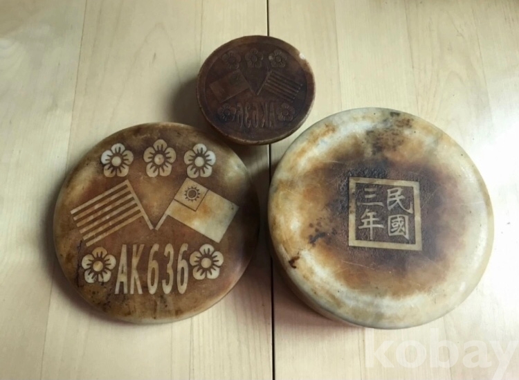 옥돌 조각 원통세트 구성품 3개 지름13.2cm 높이5.9cm.
