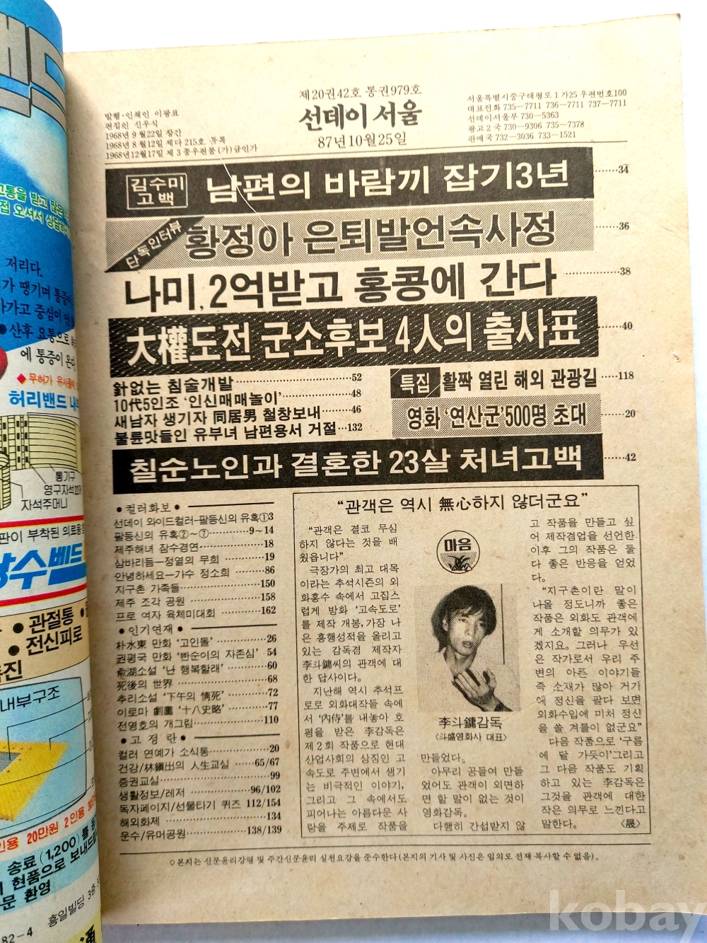 <'87. 10월 25일 / 선데이 서울 (제20권42호 통권제979호)>