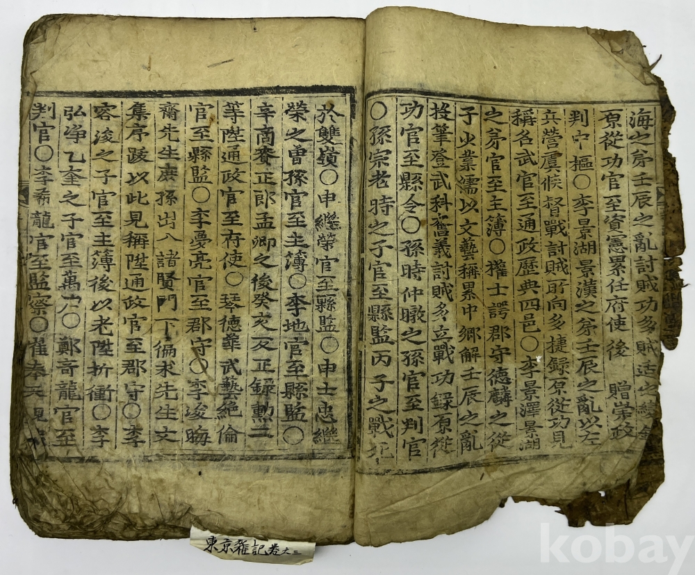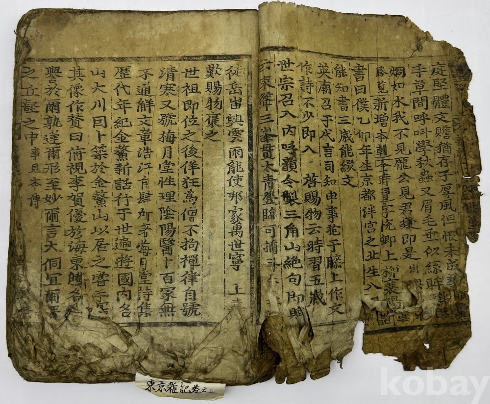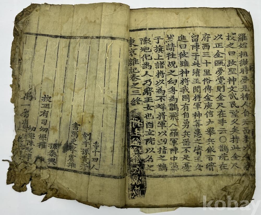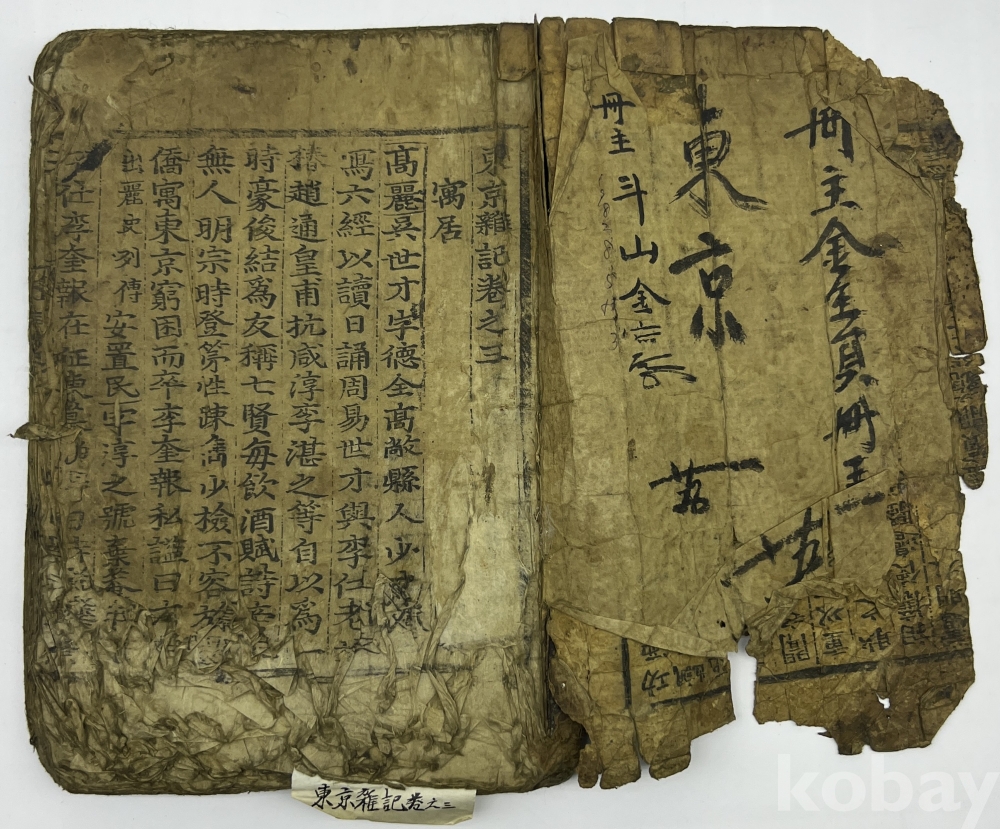 설 명 | 경주의 읍지로 1669년 민주면(閔周冕)이 전해오는 ‘동경지’를 편집하여 ‘동경잡기’를 간행했고, 1711년 남지훈이 재간하였는데 바로 본 출품물이다. 총 3권 완질이나 본 출품물은 마지막 3권 1책이다. 말미에 각수, 서사자, 교정자 이름 등과 남지훈의 수서각 발문이 있다. 지질로 볼 때 후쇄는 아니나 상태가 불량하다. 서두 하단 부분의 훼손이 있으며, 말미부분도 우하단에 훼손이 보이니 사진으로 상태를 잘 확인해 보시기 바란다. | |||||