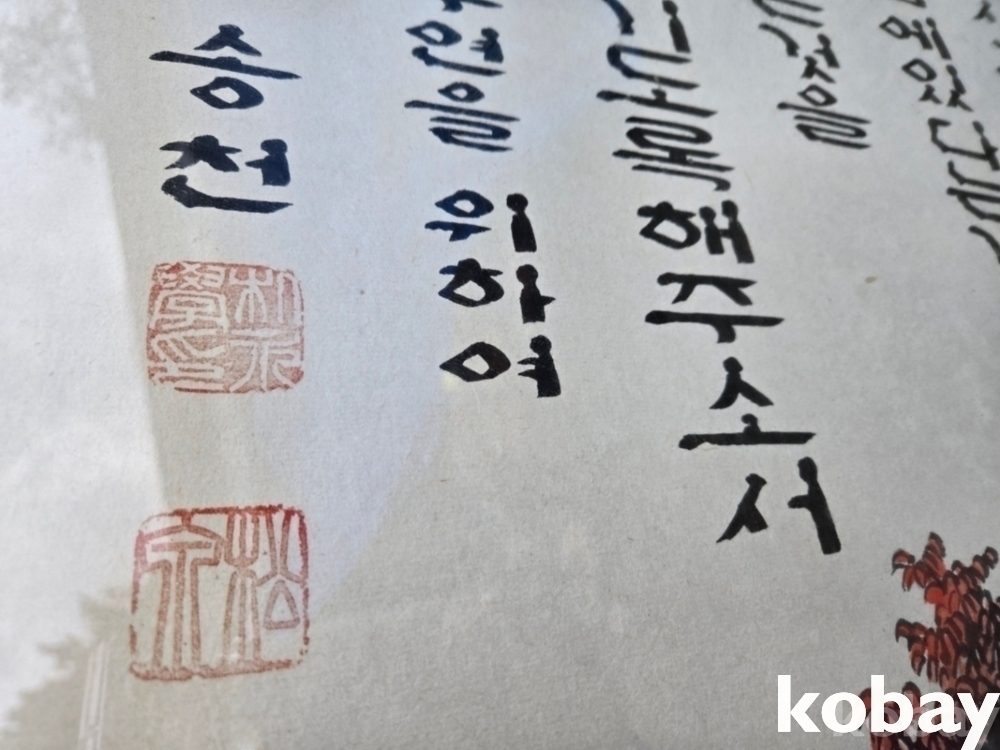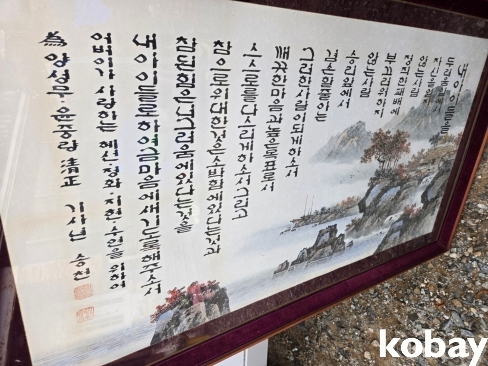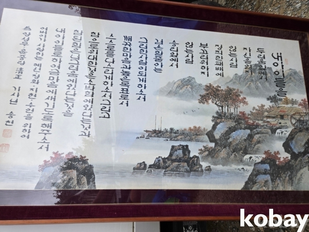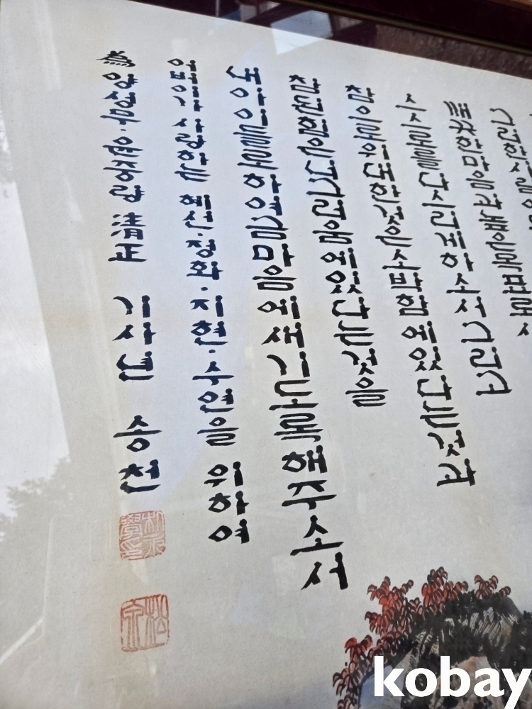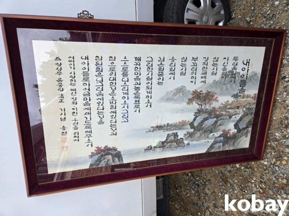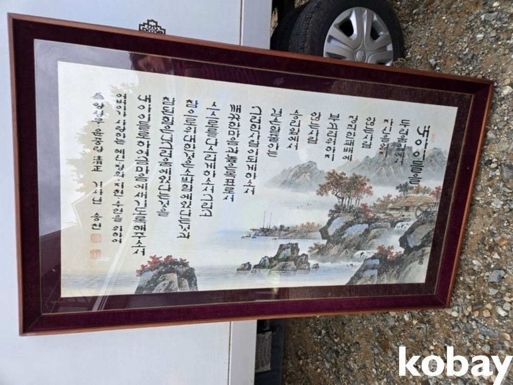 글씨와 산수 풍경을 표현한 대형 액자 입니다.