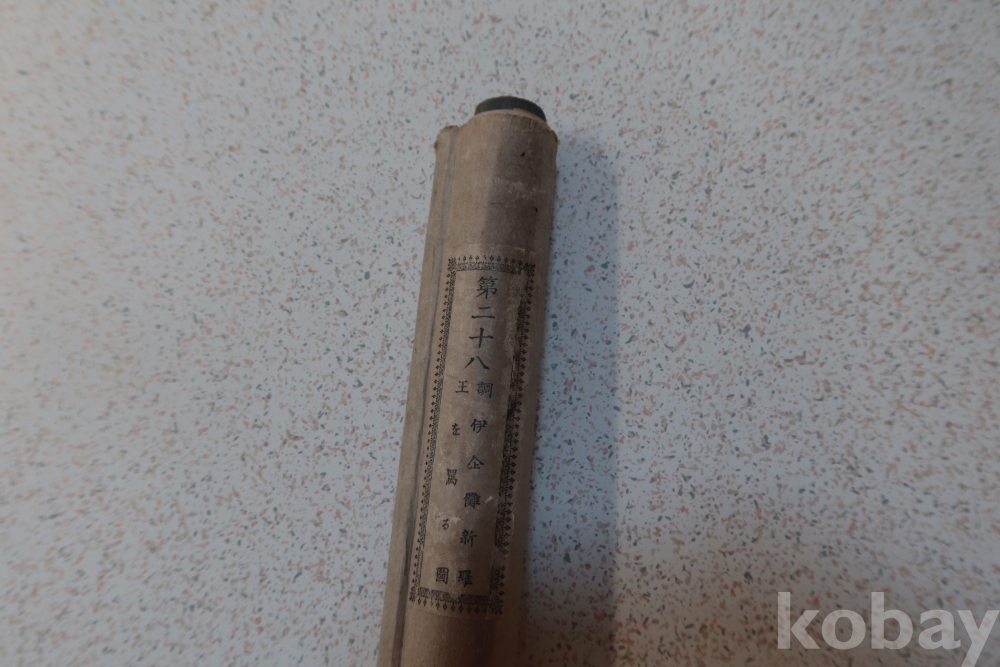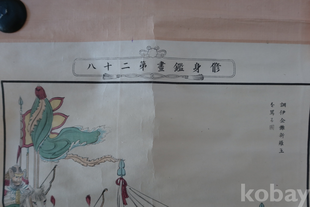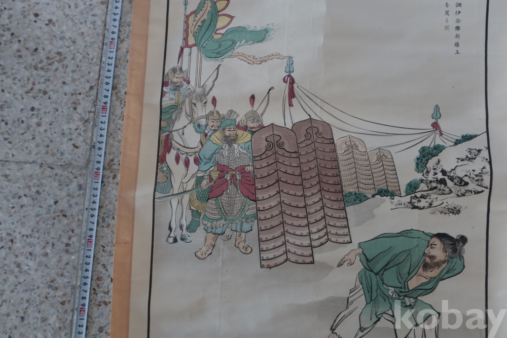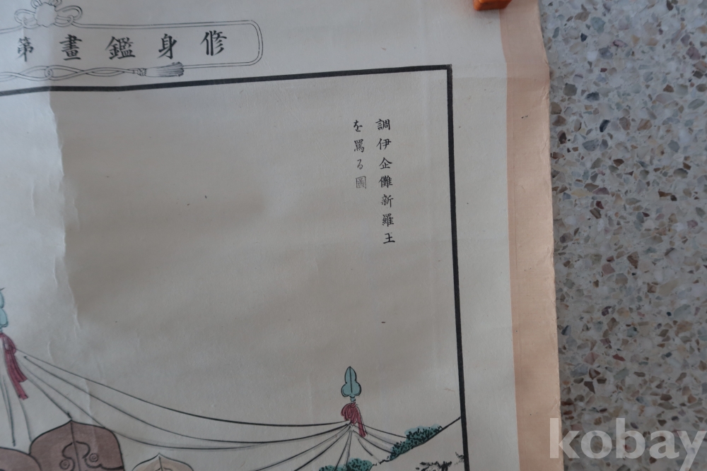 일본 족자 임니다 오래전 일본 역사 자료 이며 제작 된 연도 등이 보이는 오래된 족자 임니다 신라왕을 모독하는 일본 극우적 그림 족자 임니다 불허복제 보임니다