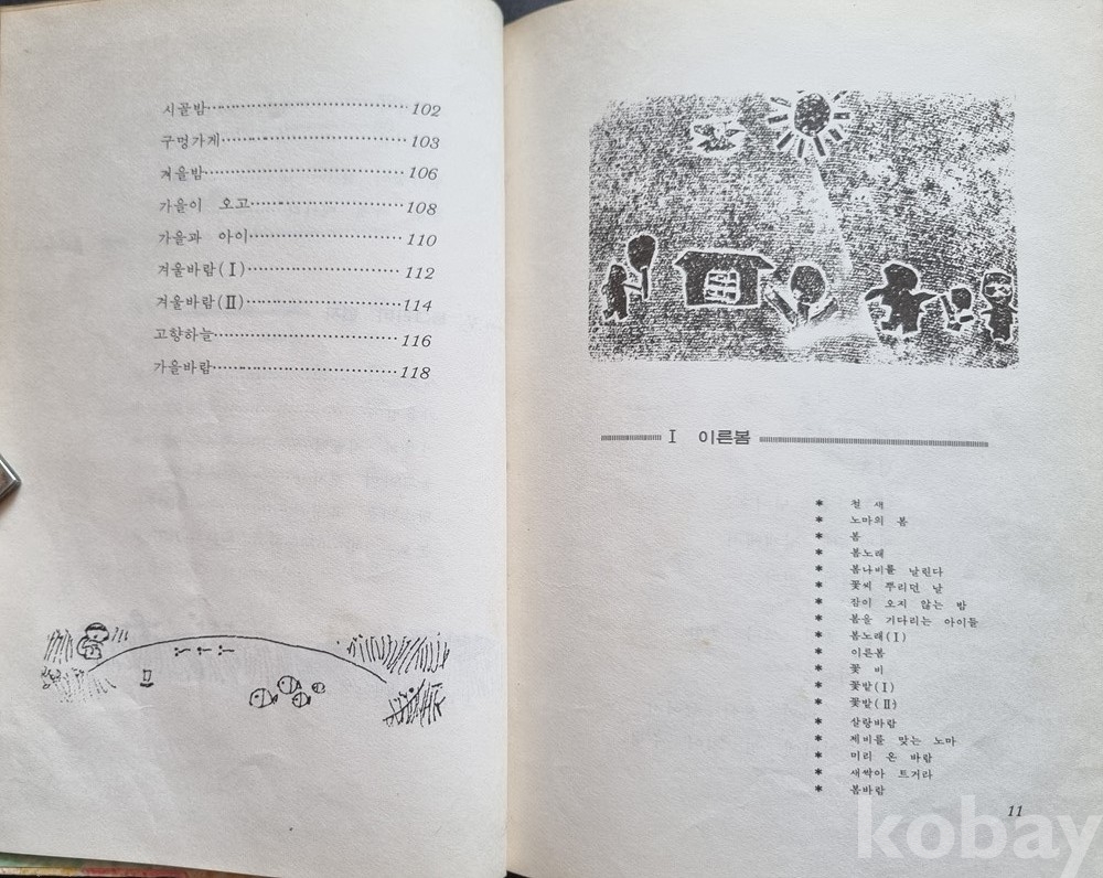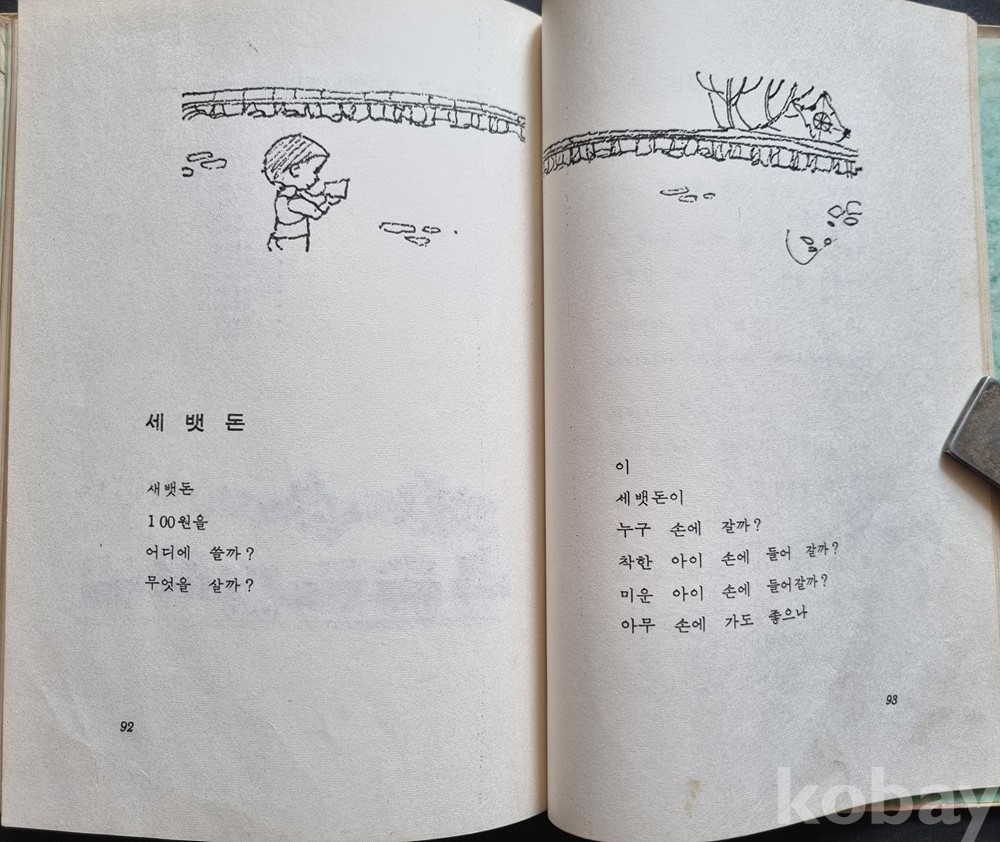 서정적인 내용과 상태본문: '세뱃돈 100원을 어디에 쓸까'와 같은 당시의 시대상이 반영된 정겨운 시들이 수록되어 있습니다.