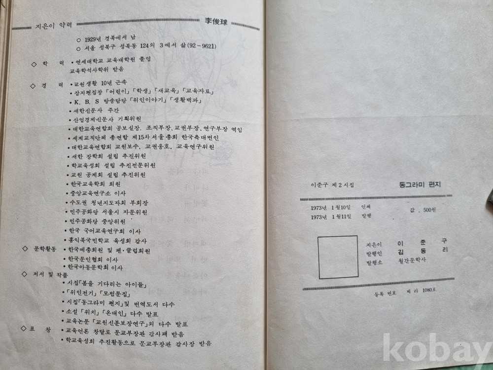 1970년대 초반 희귀 초판본1973년에 발행된 시집으로,