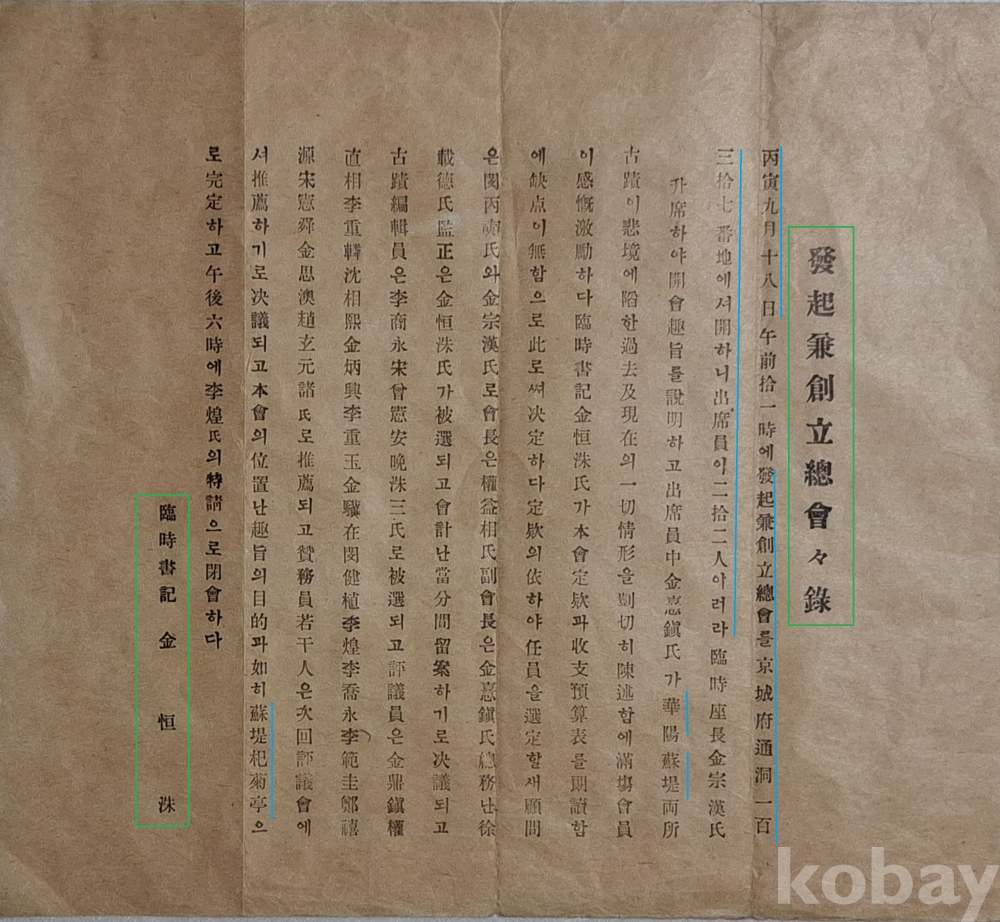 ◈ 발기인 명단과 창립총회에서 선출된 임원 명단이 기록되어 있다.