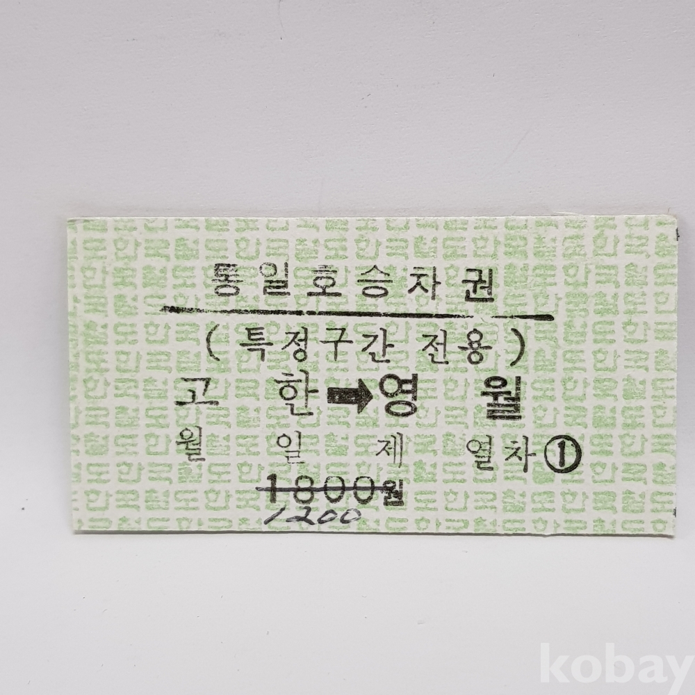 - " 고한 ▶ 영월 " 미사용 통일호 승차권(특정구간전용) 1200원