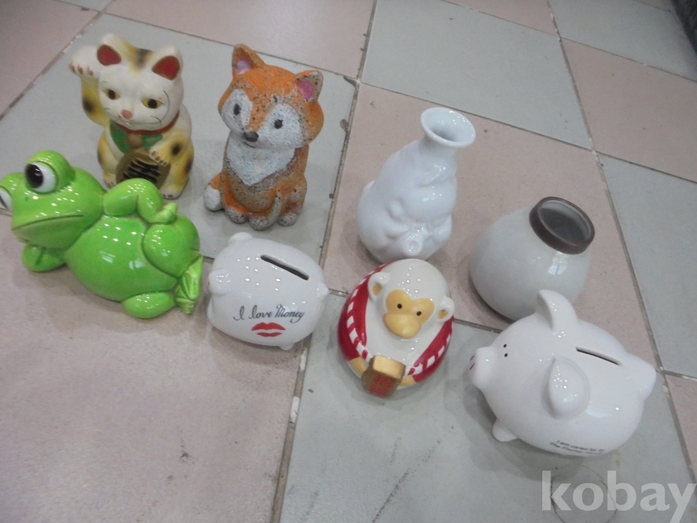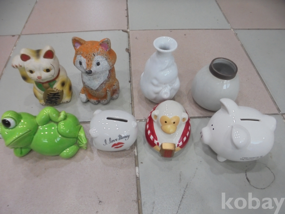 정말멋있는 천하의 말성꾸러기 누운 청개구리1점 크고작은 고급백자 돼지저금통 2점 복을부르는 원숭이1점 희안한 모션의원숭이 1점