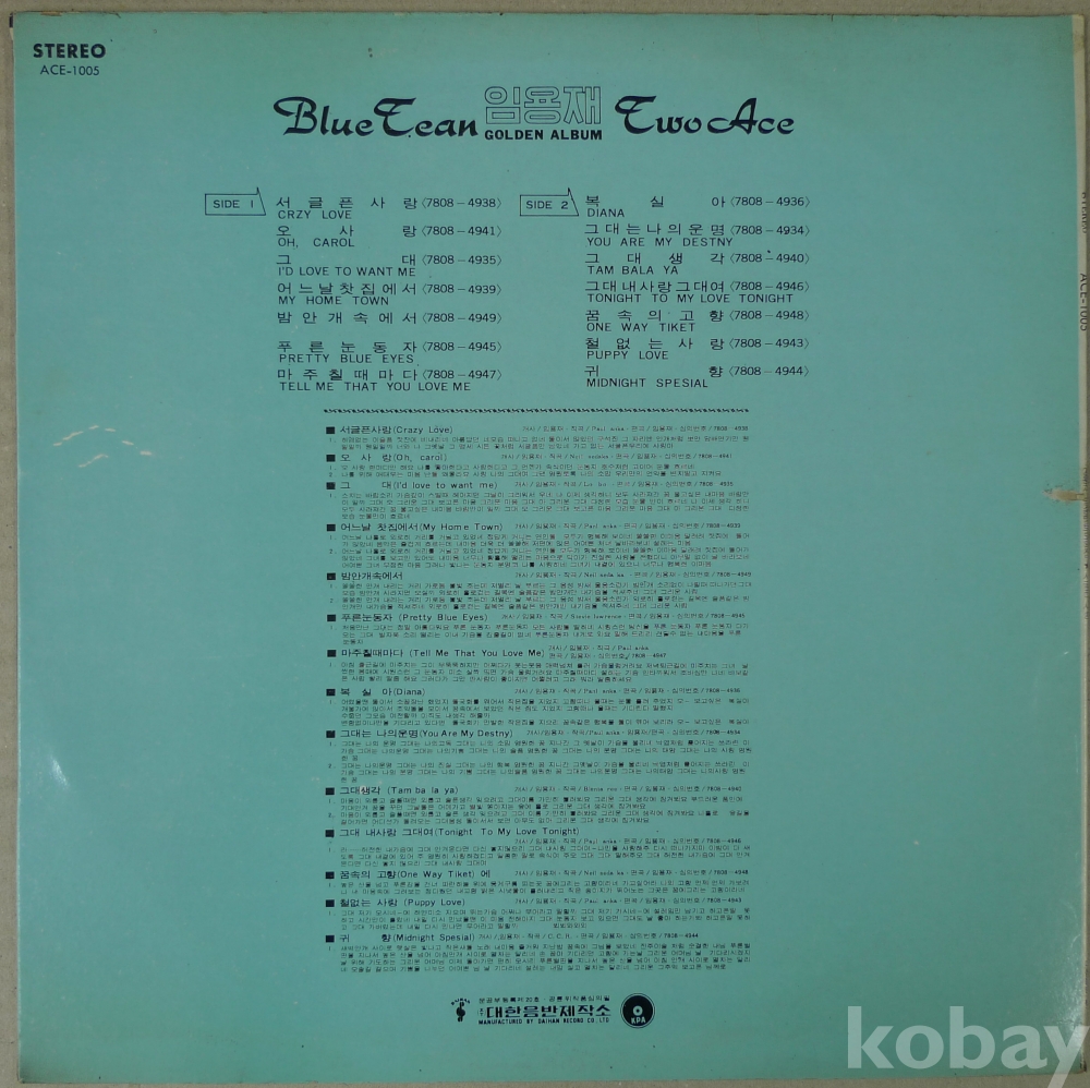 1978년 가수 임용재 팝송 힛트 모음집 음반 LP