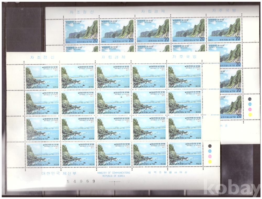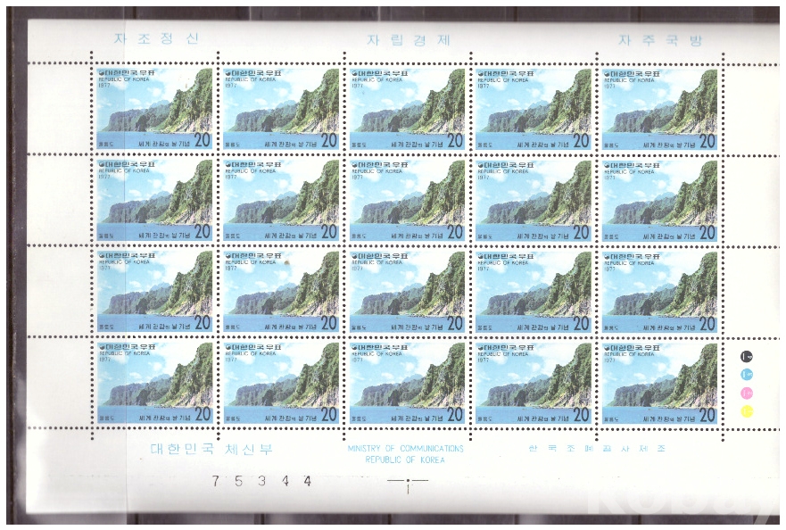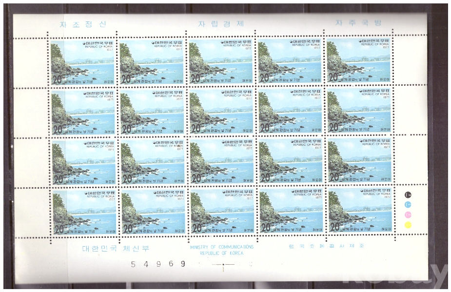 (한국전지) 1977.9.28 세계관광의 날 2완 sheet of 20 MNH