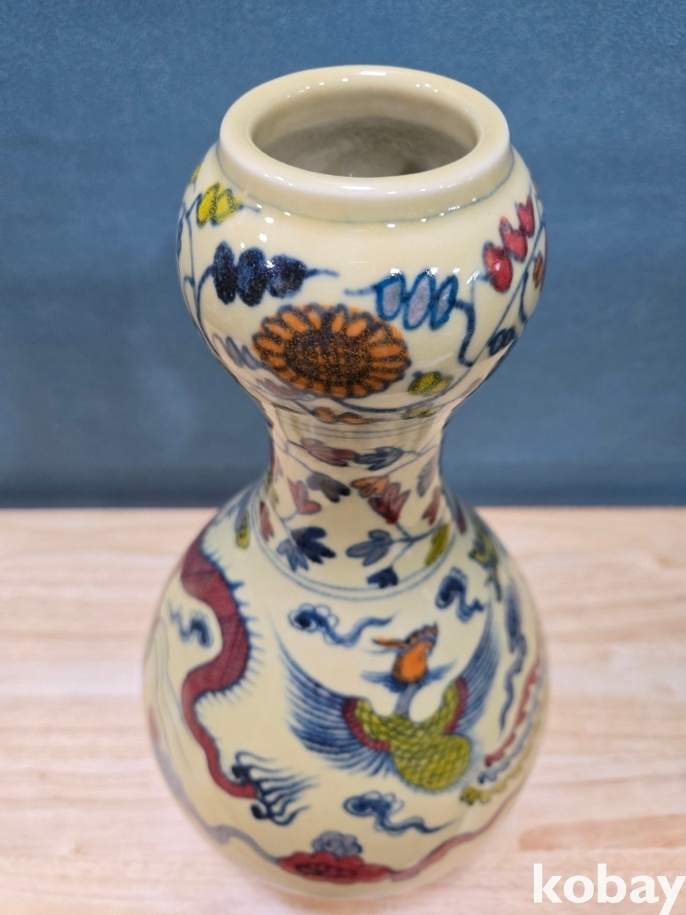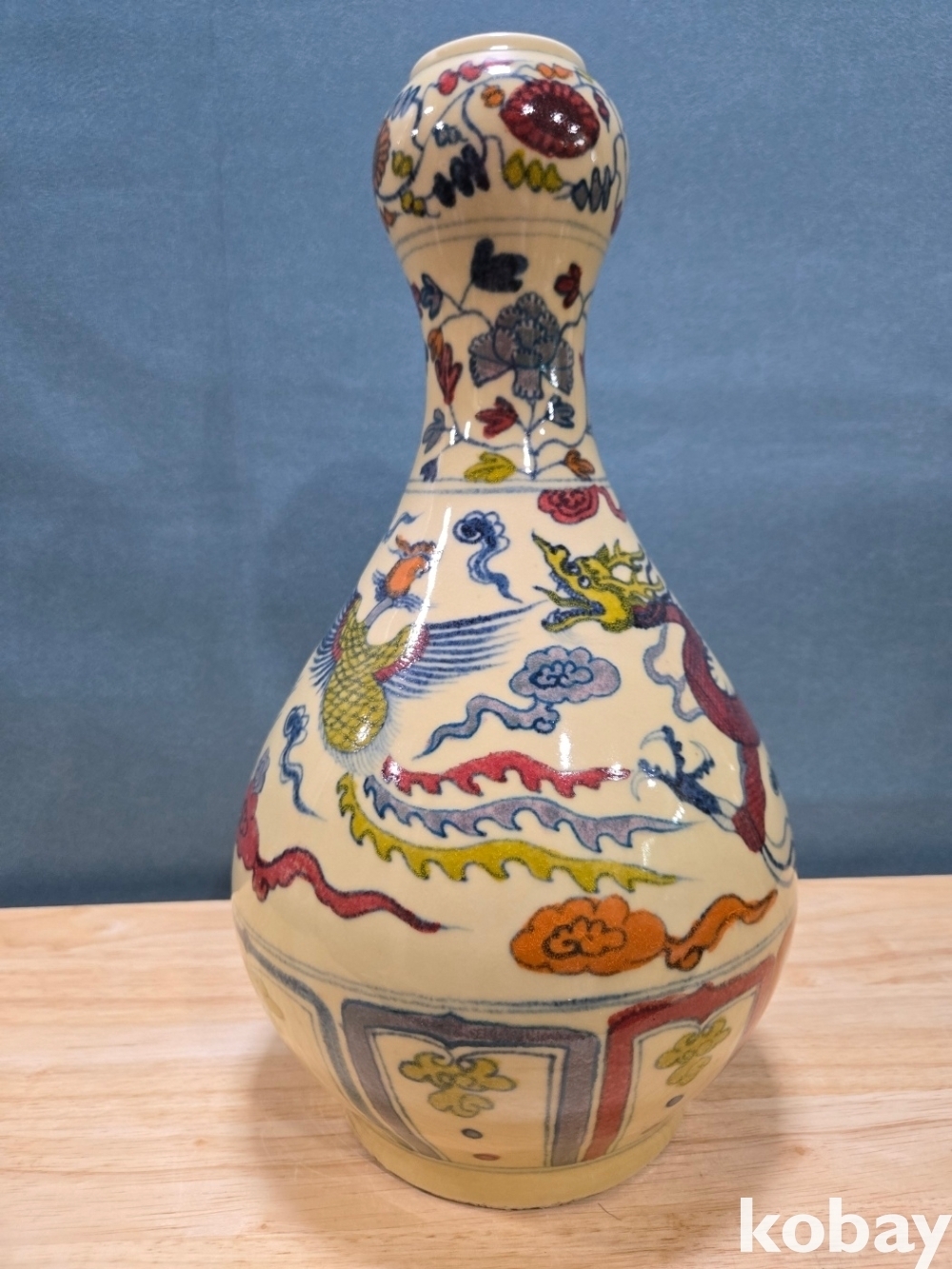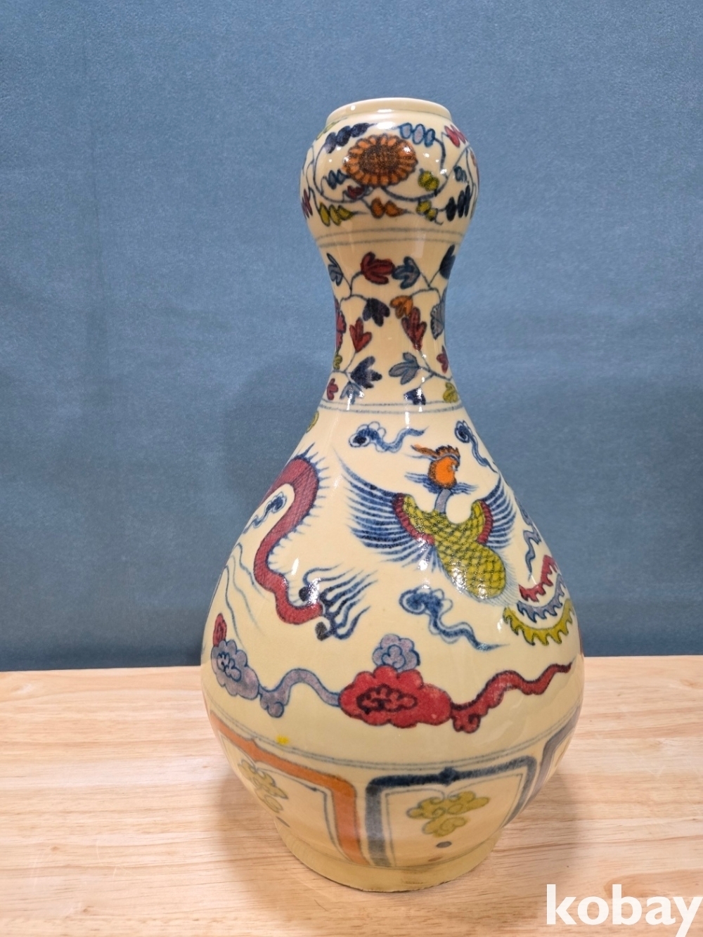 새와 용 문양 호리병 도자기 입니다.