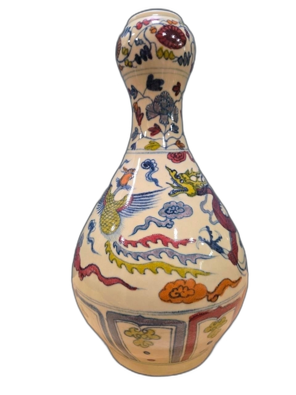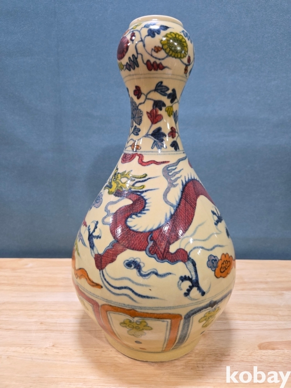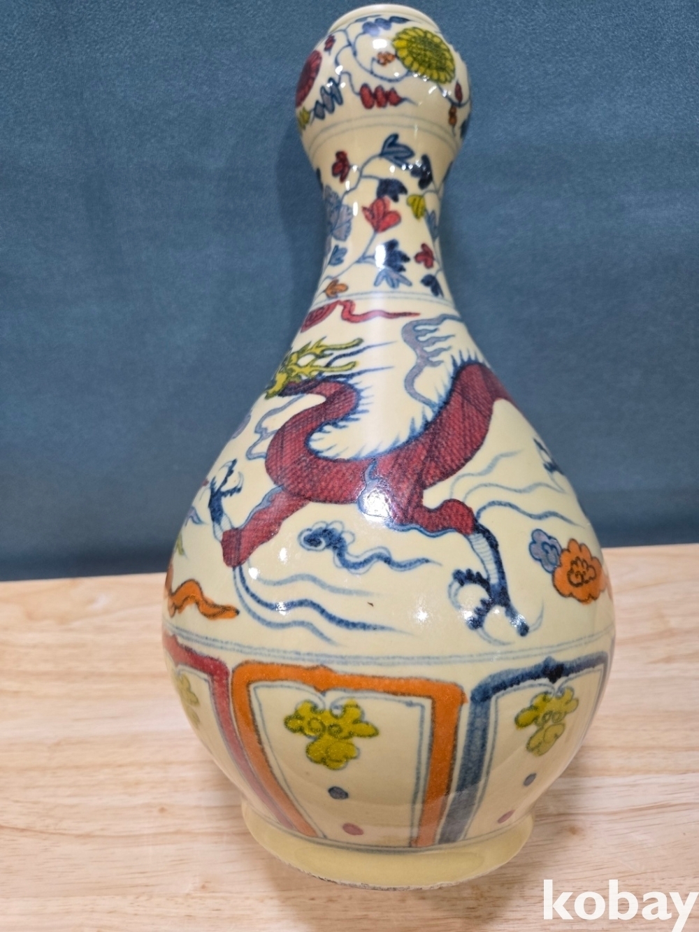 새와 용 문양 호리병 도자기 입니다.