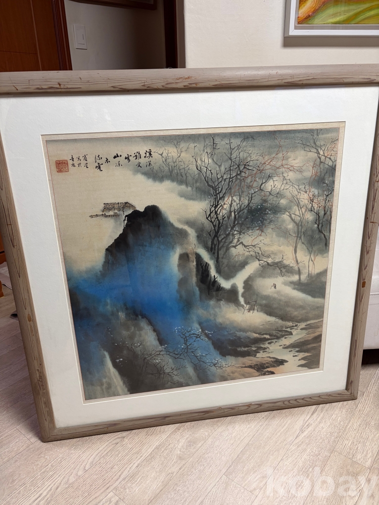 중국 수묵화 입니다 액자틀 원목이 조금 노후되있습니다