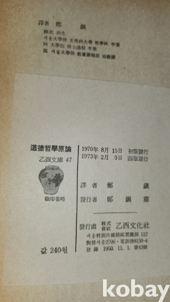 1973년 판 도덕철학원론입니다,