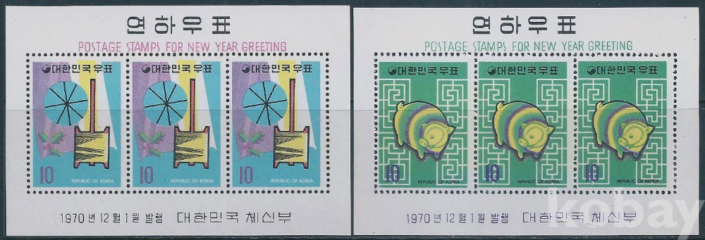 (한국시트-850)1970년71년용연하시트2종(미사용제)-MNH, F~VF