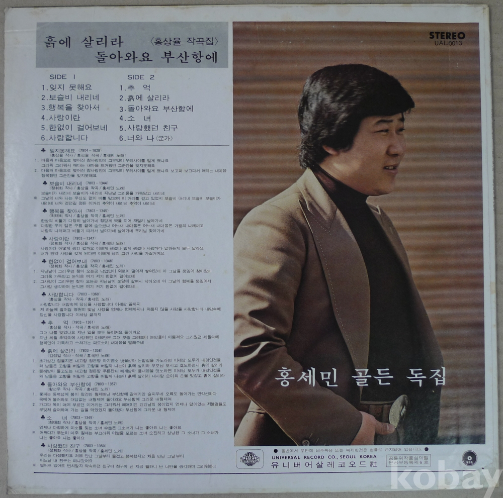 1978년 가수 홍세민 골든 독집 음반 LP