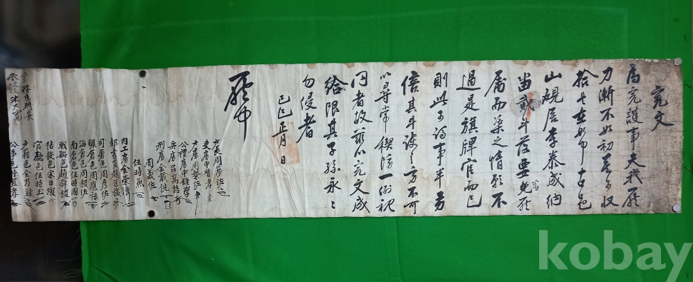 이 문서는 조선시대 관청에서 특정 권리를 증명하거나 분쟁을 해결하기 위해 발급한 공문서인 '완문(完文)'입니다. 완문은 관청에서 개인이나 단체에 특권을 부여하거나, 기존의 권리를 확인해주고, 민원 처리를 보장하기 위해 작성된 행정 증빙 문서입니다. 문서 좌측 하단에 '기사 정월 일(己巳 正月 日)'이라는 기록이 보입니다. 여기서 '기사년'은 조선 후기 맥락상 1869년(고종 6년) 입니다. 이러한 완문은 당시 지방 행정 체계와 민간의 사회적 권리 관계를 보여주는 중요한 사료입니다.