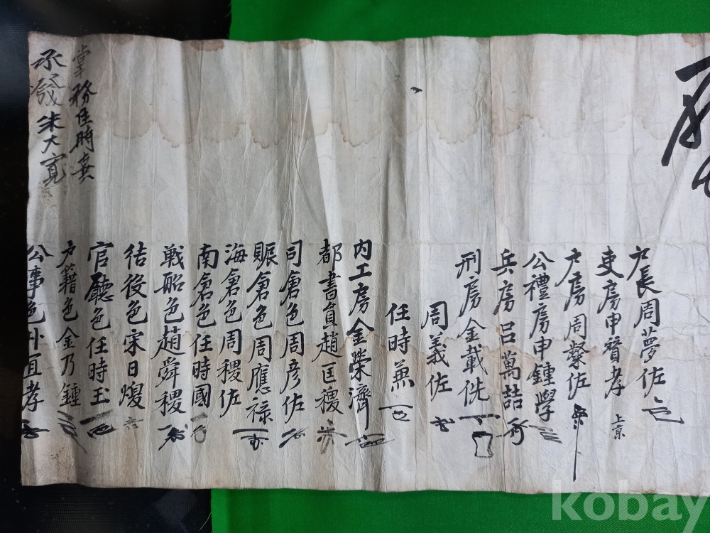 당시 지방 행정 조직인 6방과 각 부서의 담당자들이 자신의 이름 위에 수결 사인)을 남겨 문서의 내용을 보증하고 있습니다.