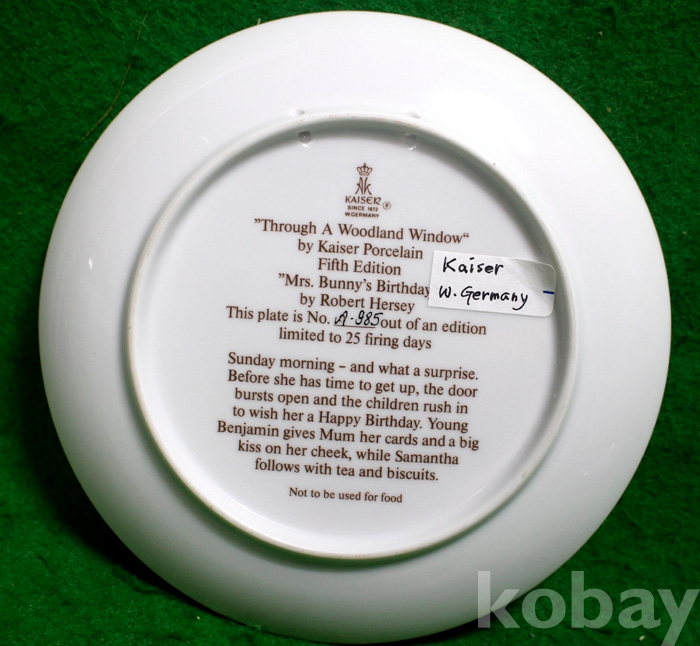 (한정판 명화접시) Mrs. Bunny's Birthday - 독일제작