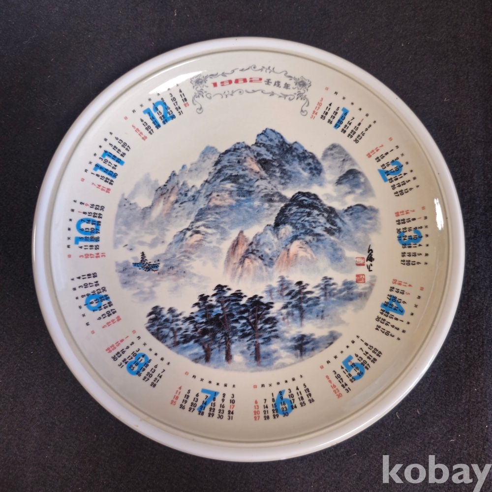 (((근현대사자료/캘린더접시))) 1982년 壬戌年 행남사 캘린더 도자기 접시