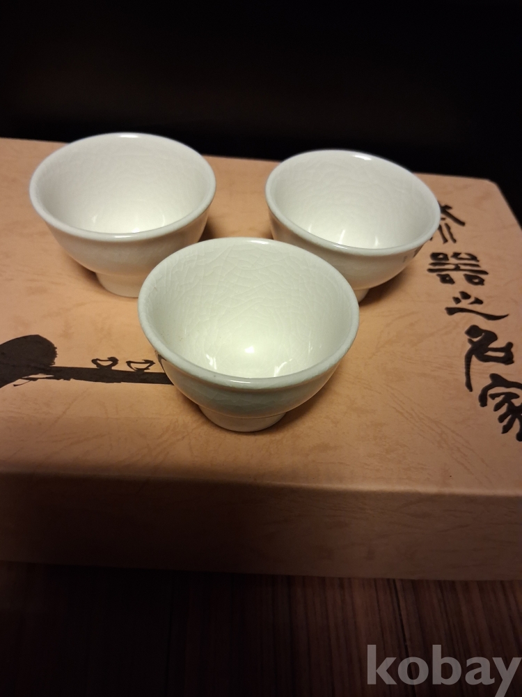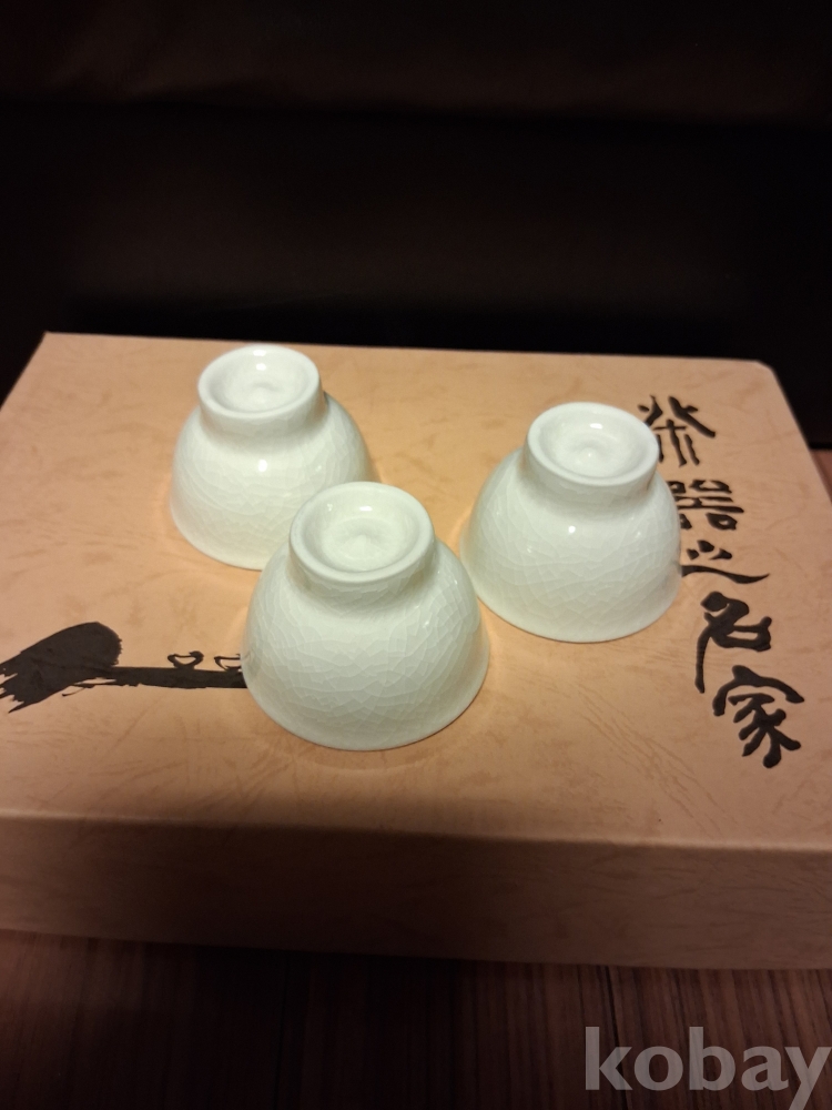 다도구의 명가 명성요 빙열이 멋진 옥색 3인다기