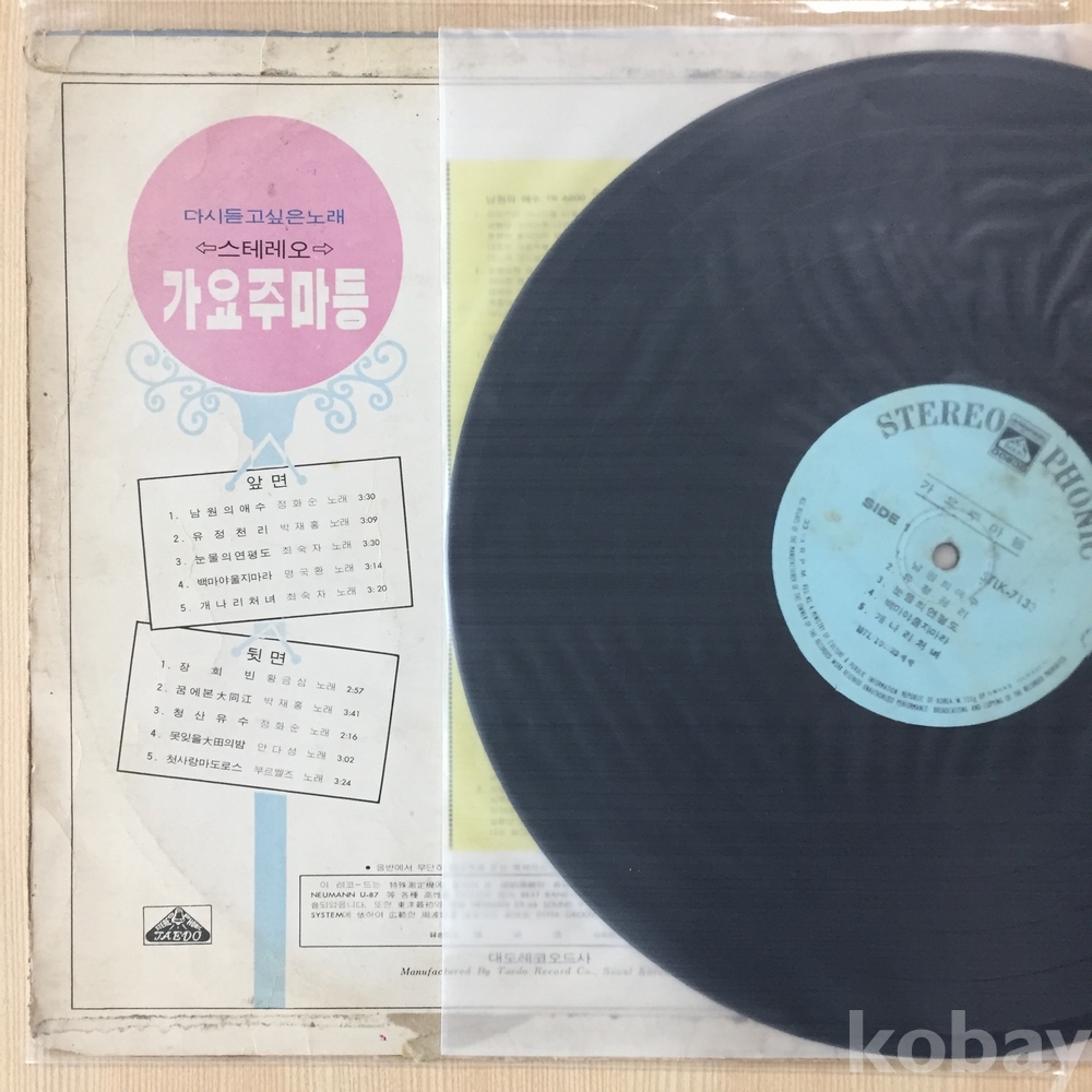 . 가요음반 대부분은 휘어짐이나 손상을 방지하기 위해 무지싱글자킷을 하나 더 사용하여 보관되었던 음반들입니다.