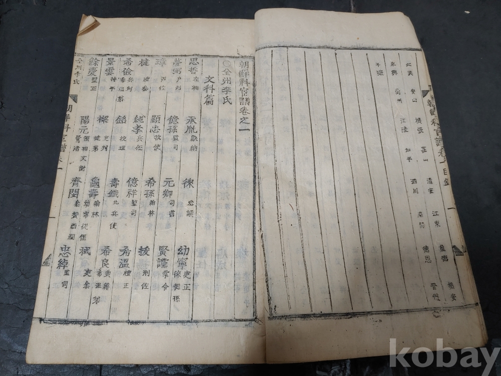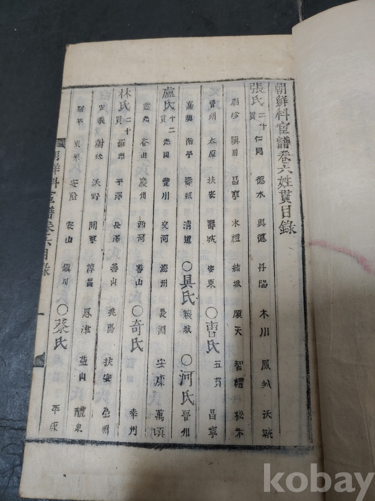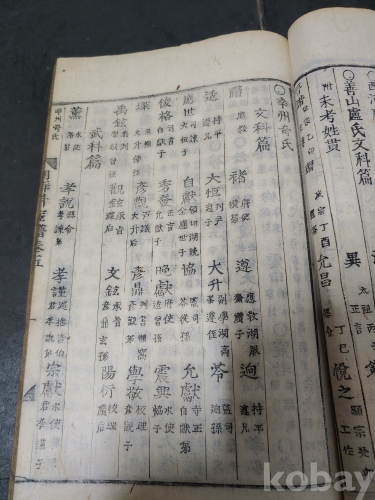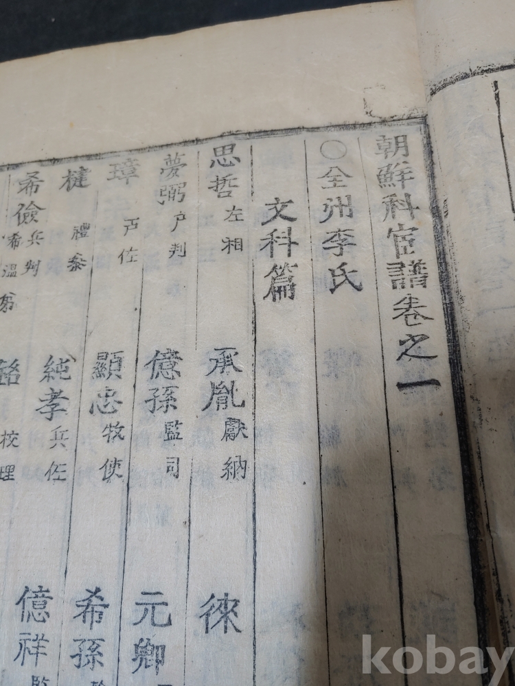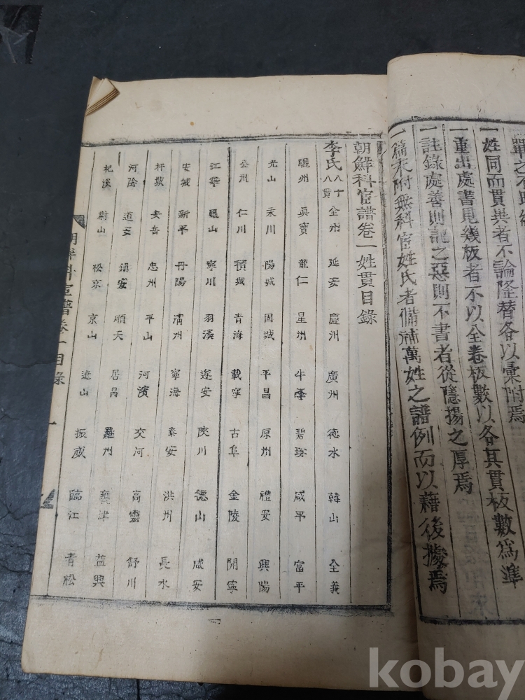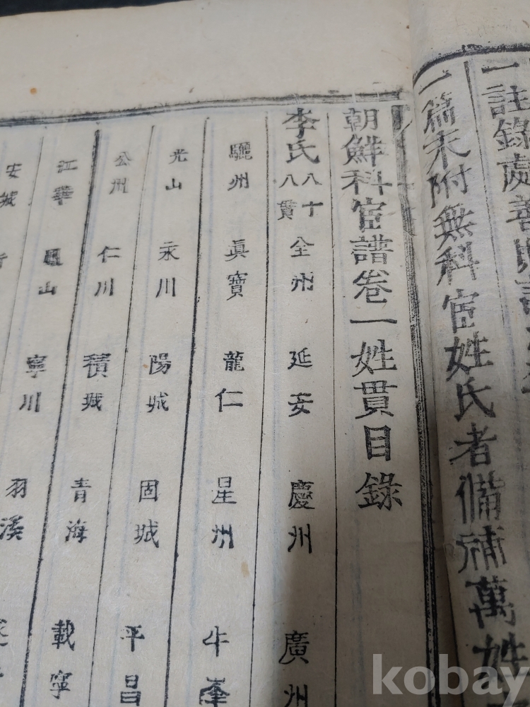 조선조 문과 무과 음사 출신자들을 각 본관 성씨별로 기록한 목판본