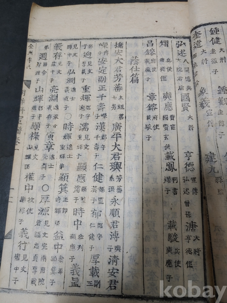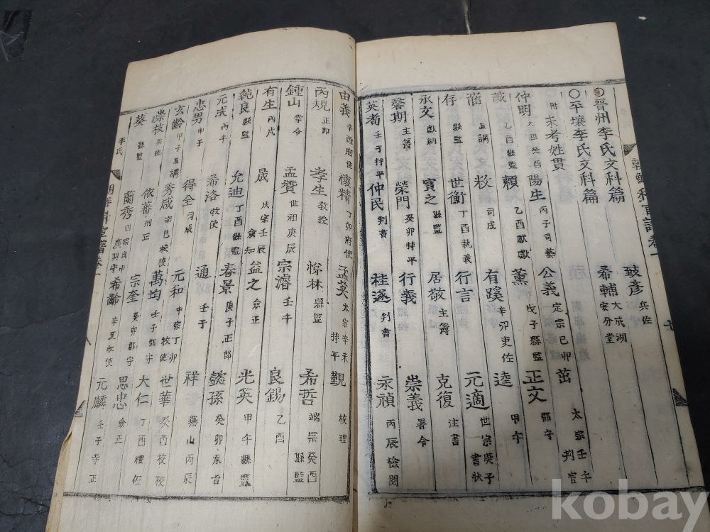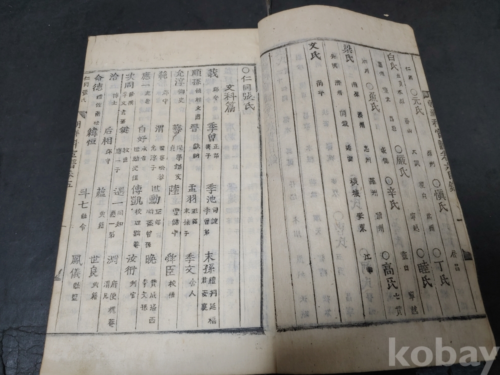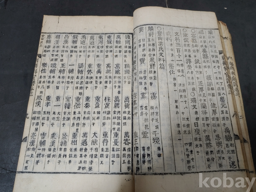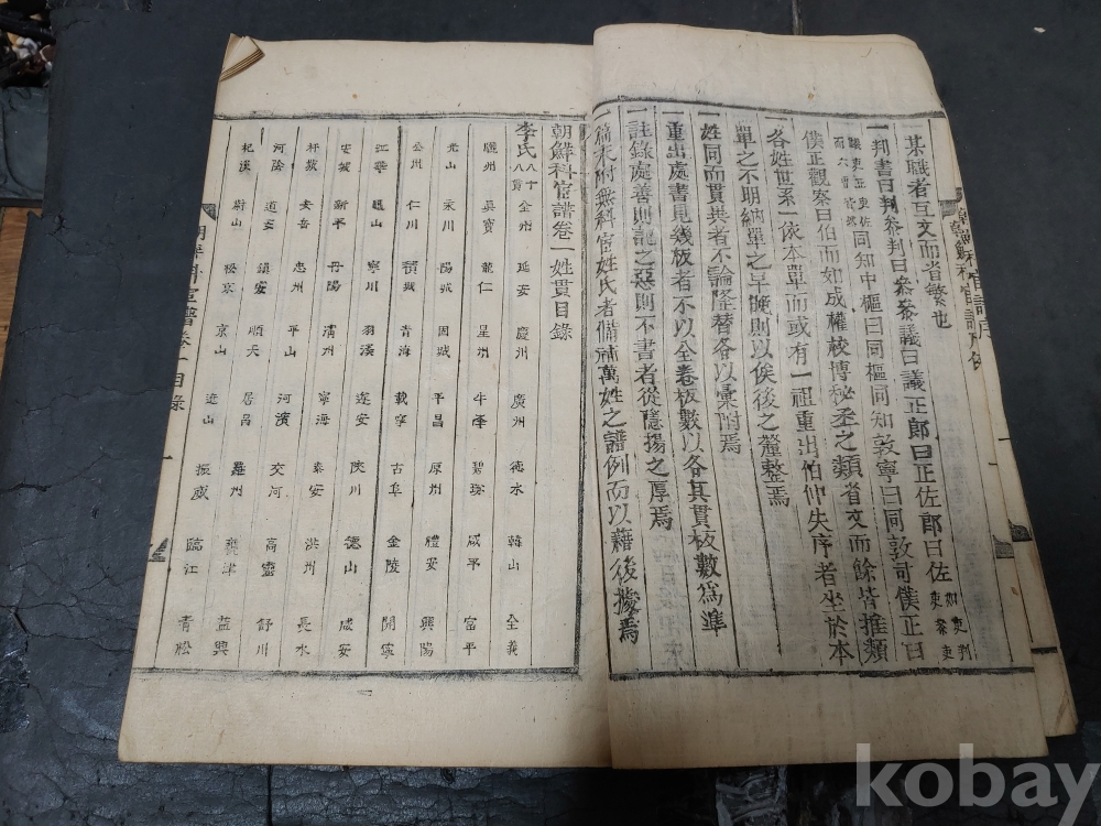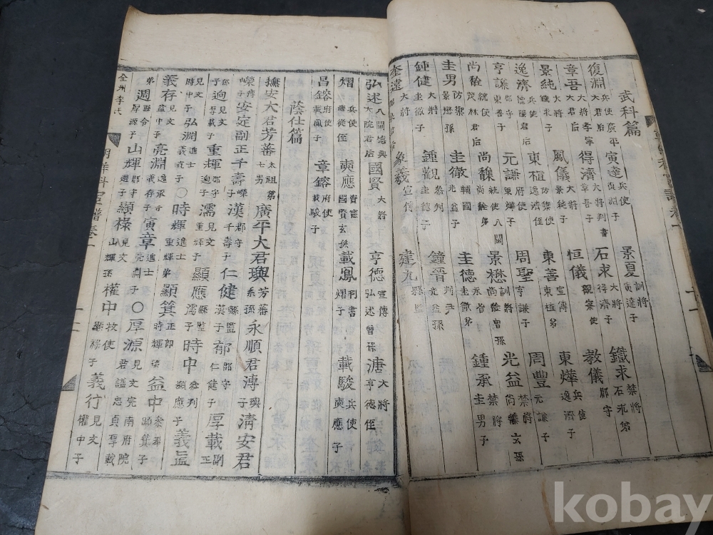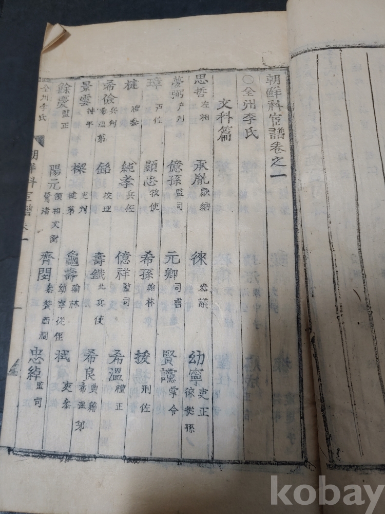 조선조 문과 무과 음사 출신자들을 각 본관 성씨별로 기록한 목판본