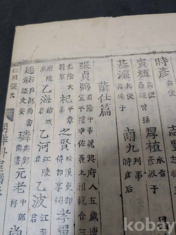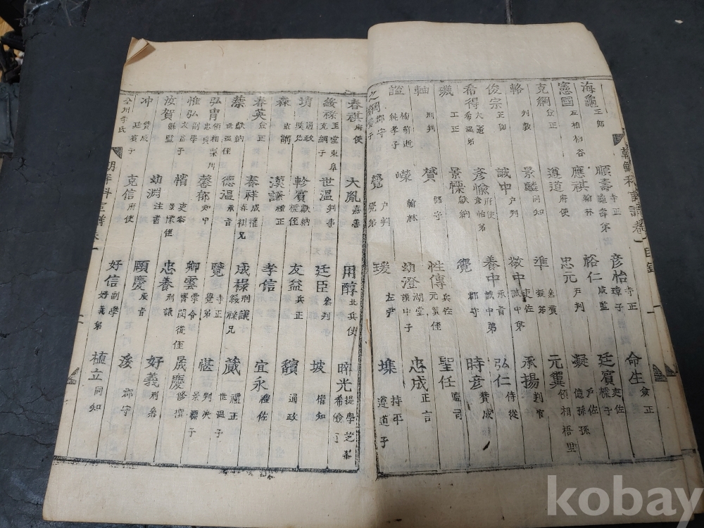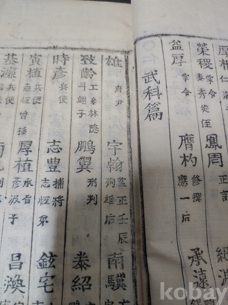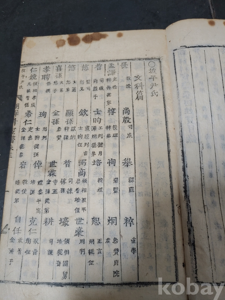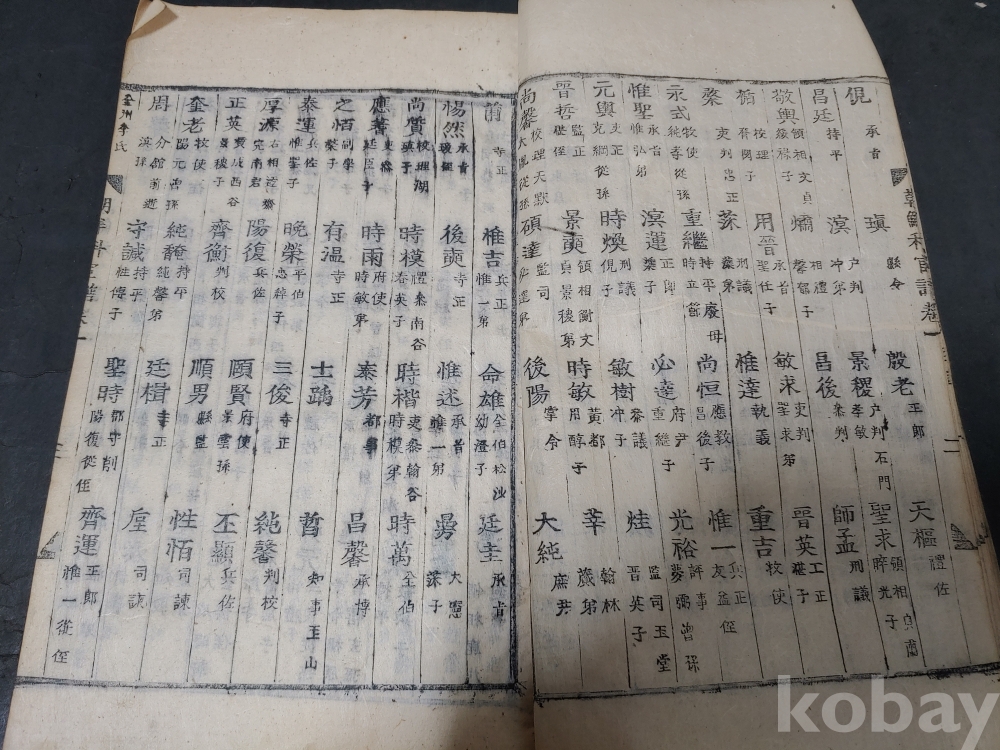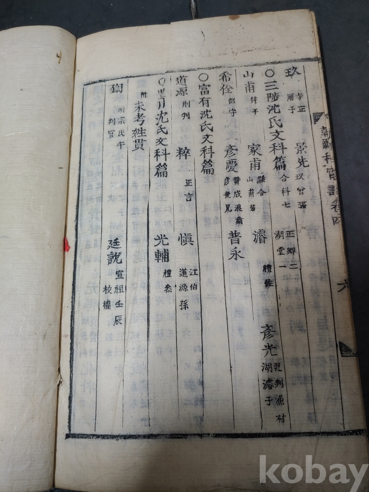 조선조 문과 무과 음사 출신자들을 각 본관 성씨별로 기록한 목판본
