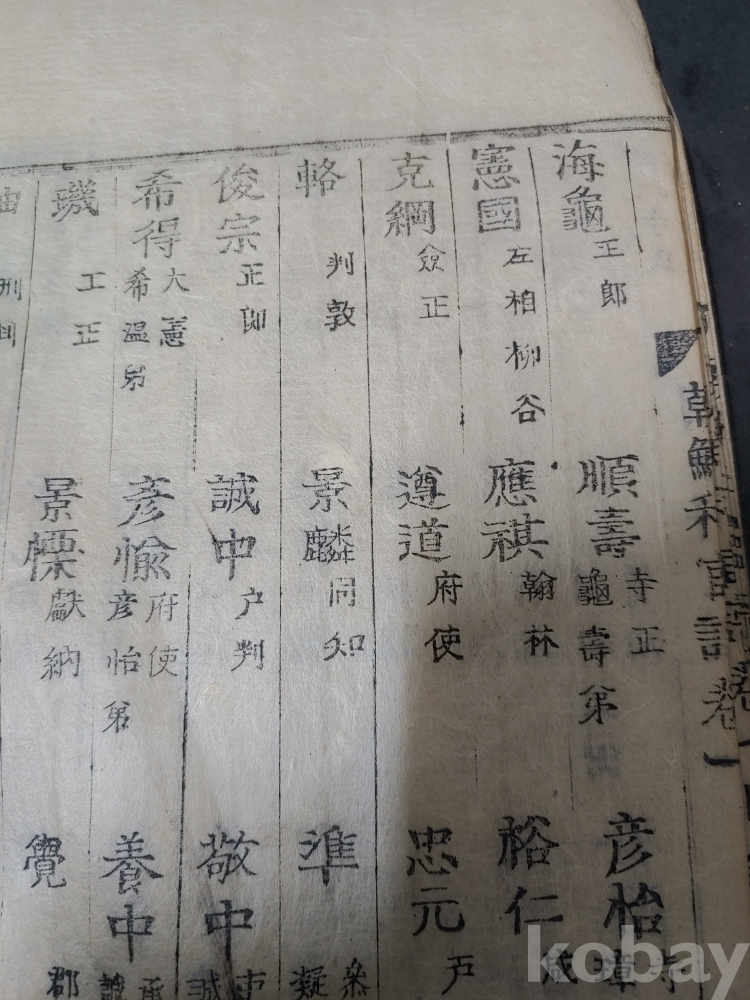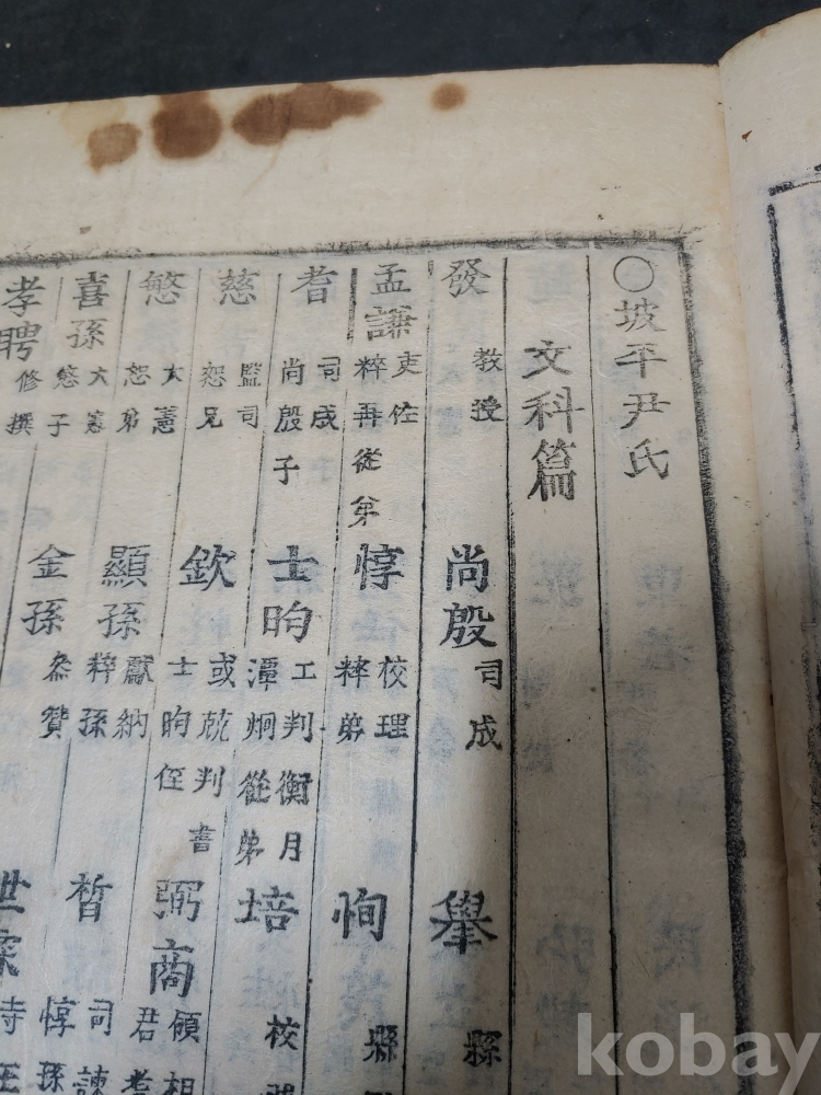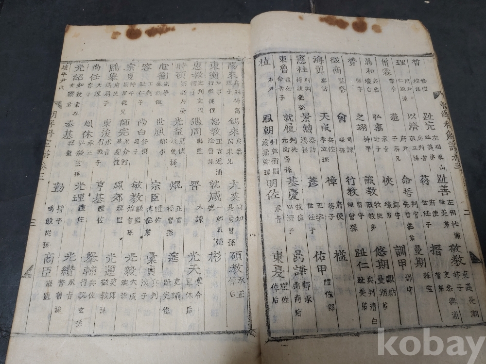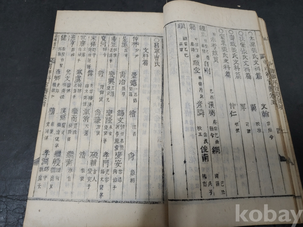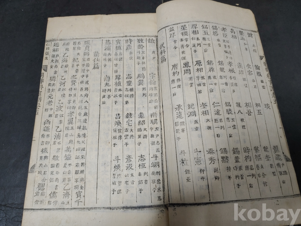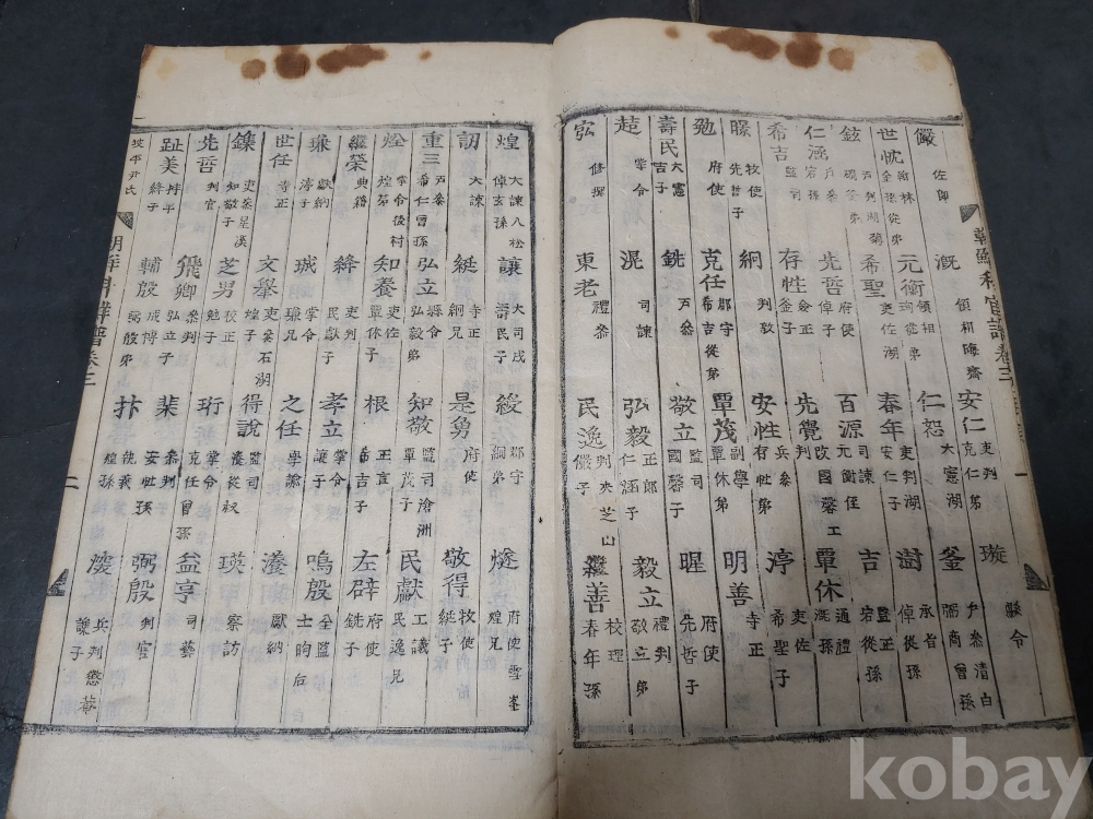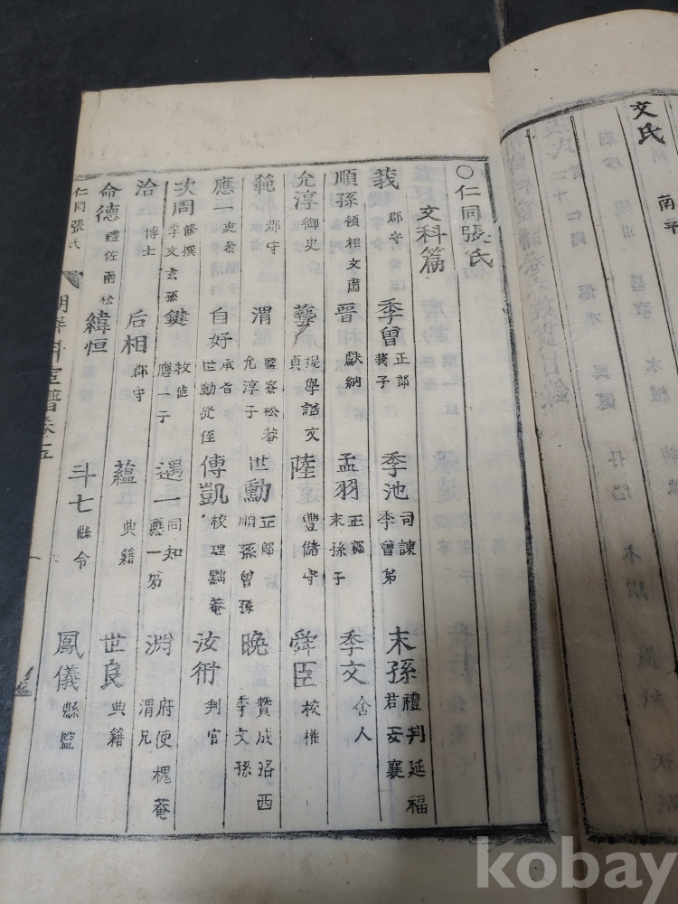 조선조 문과 무과 음사 출신자들을 각 본관 성씨별로 기록한 목판본
