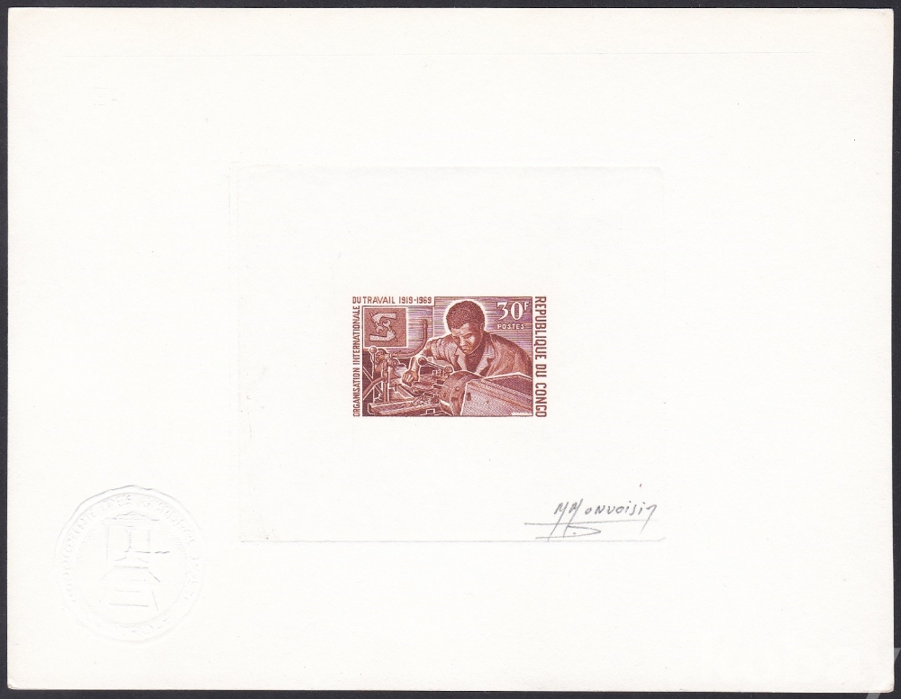 (하늘천) 콩고 Sc199 국제노동기구 ILO 50주년, 선반공, 산업, 사인 브라운 다이 프루프