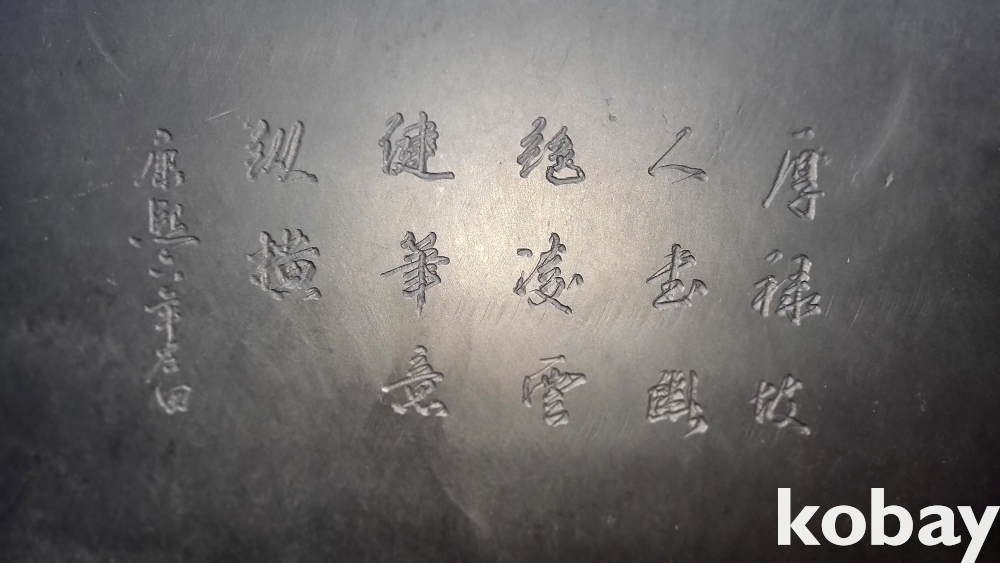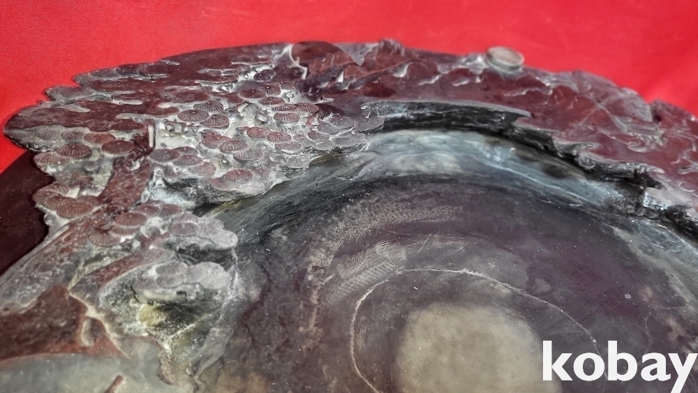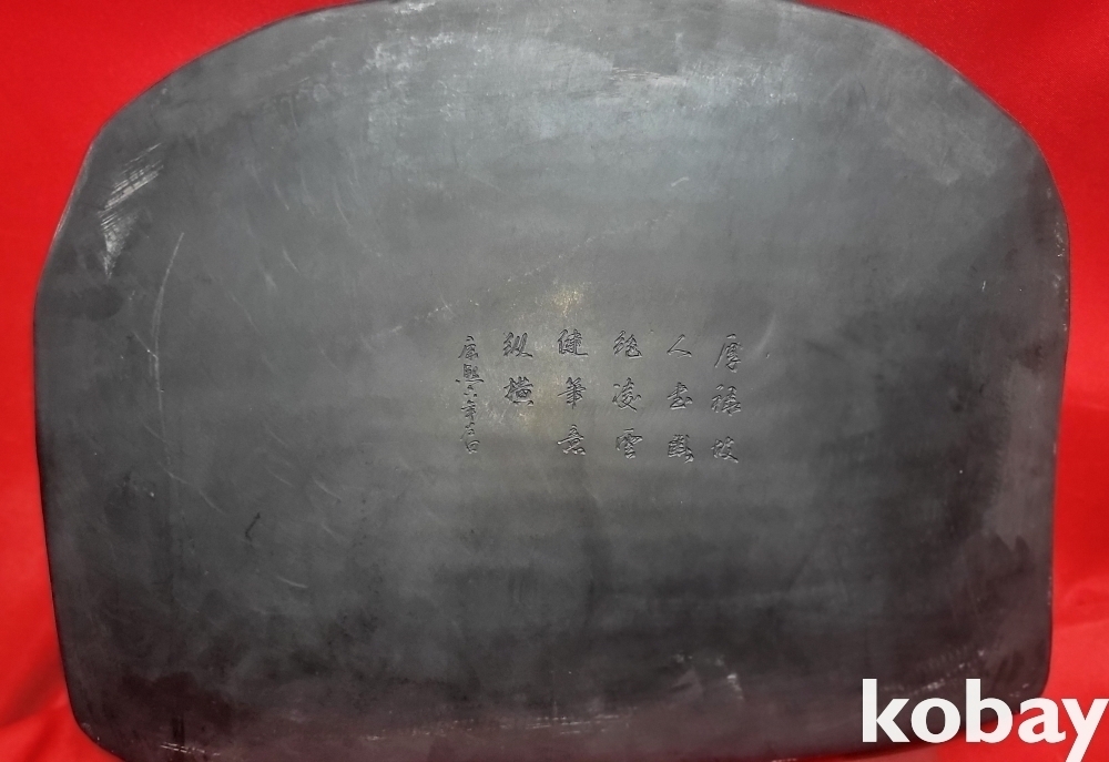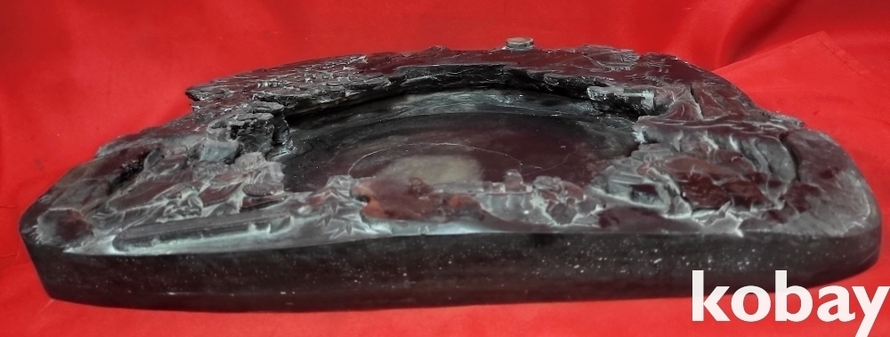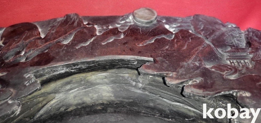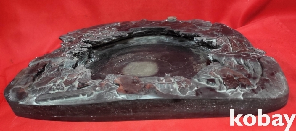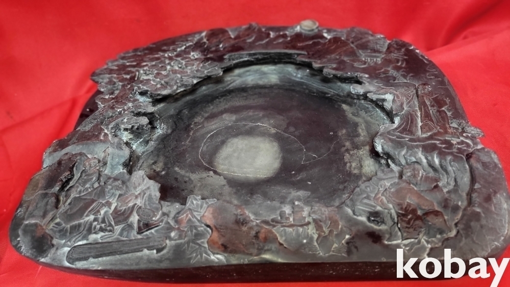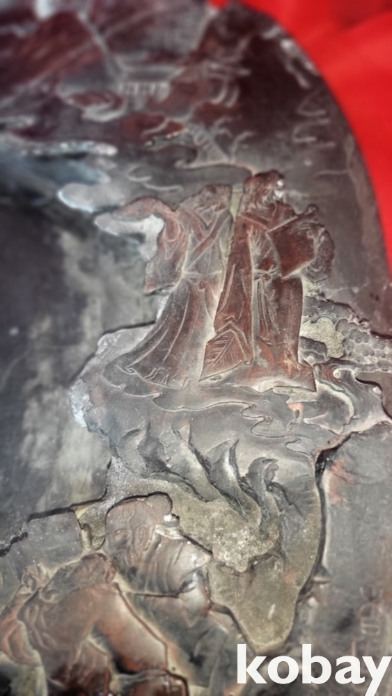 청나라 강희 6년 붉은색 옷을 입은 산수 신선문 초대형급 비취박힌 벼루입니다,