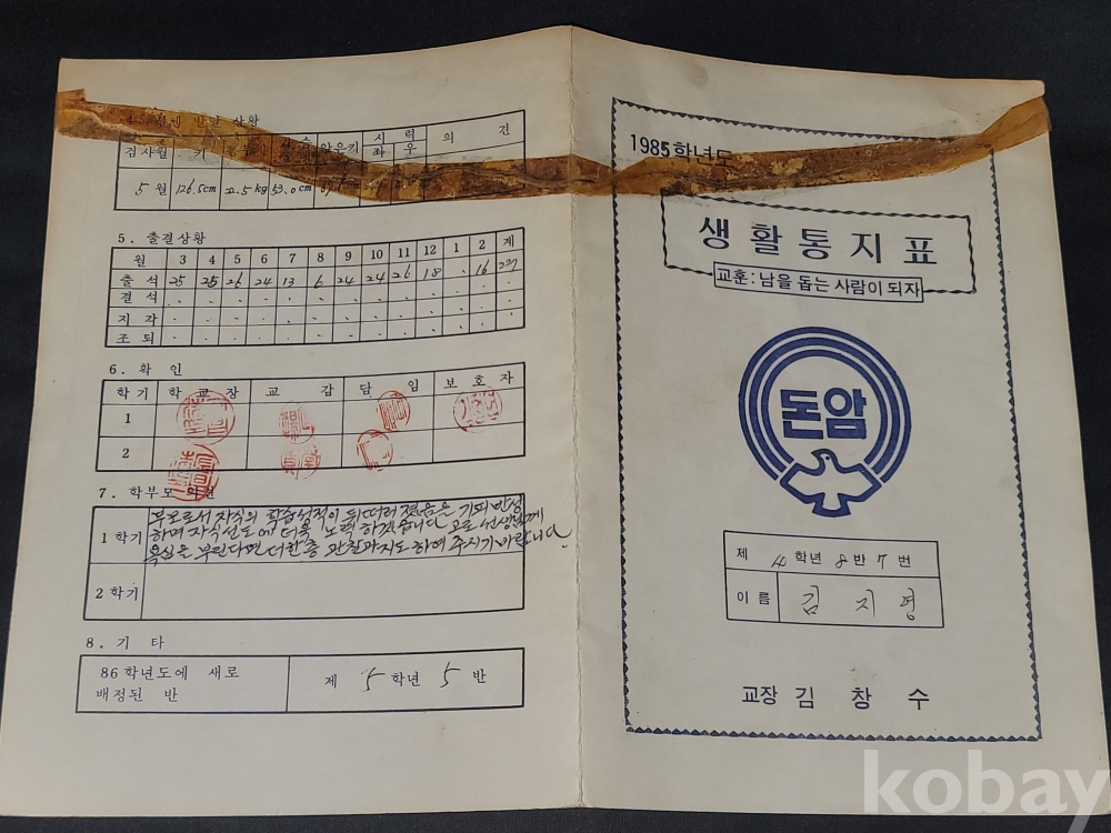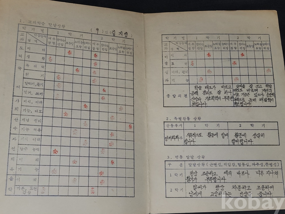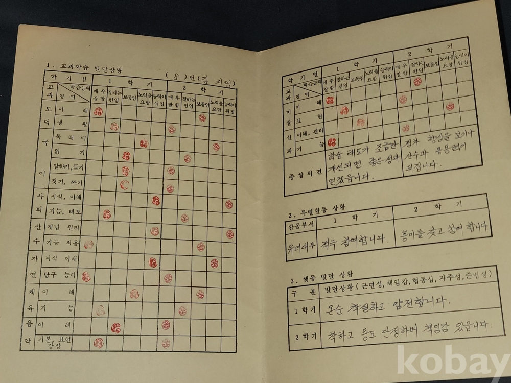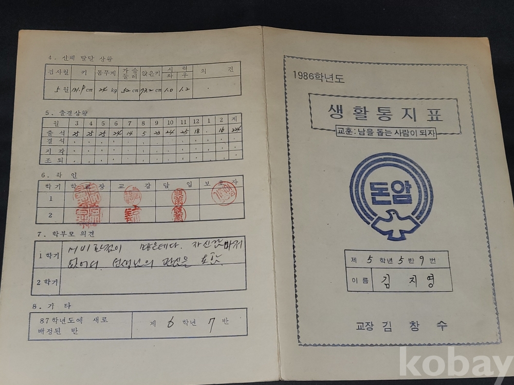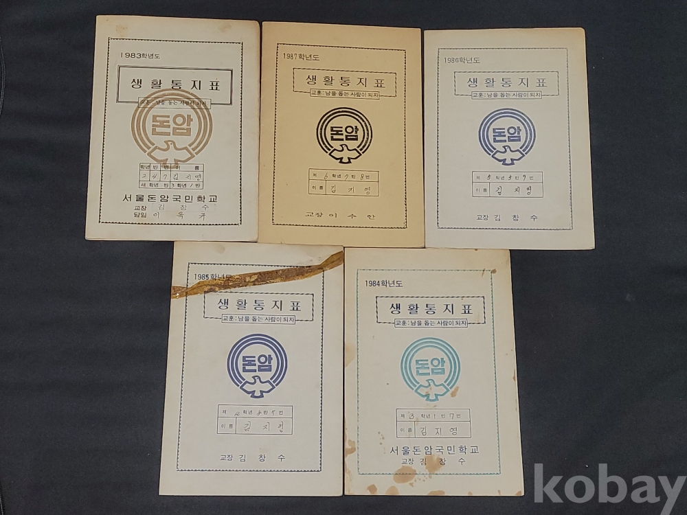 빈티지 세월 감이 느껴지는 1980년대 생활 통지표 5장 일괄입니다.