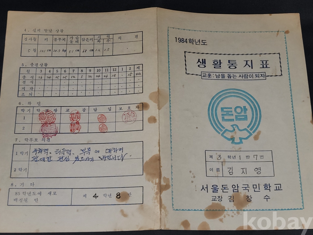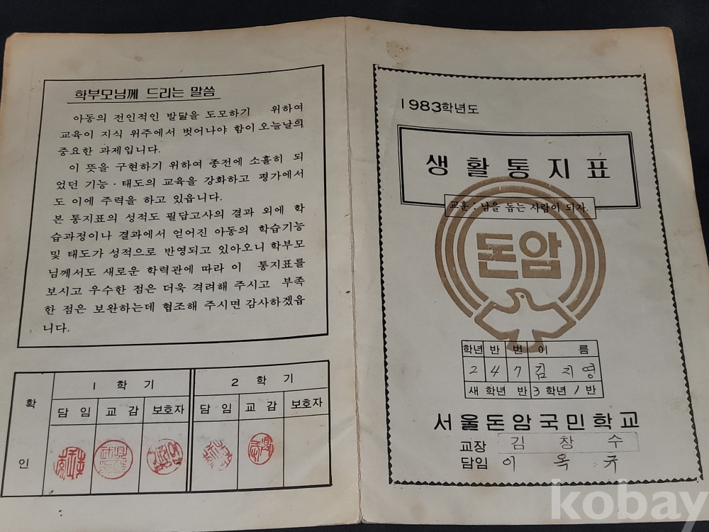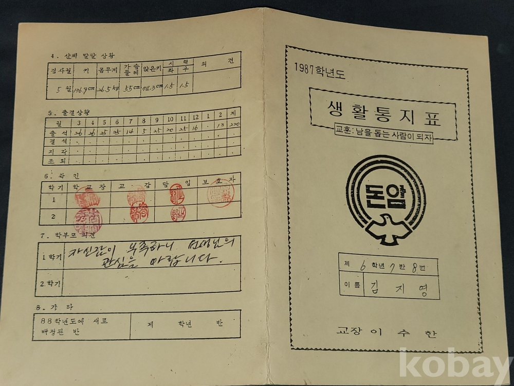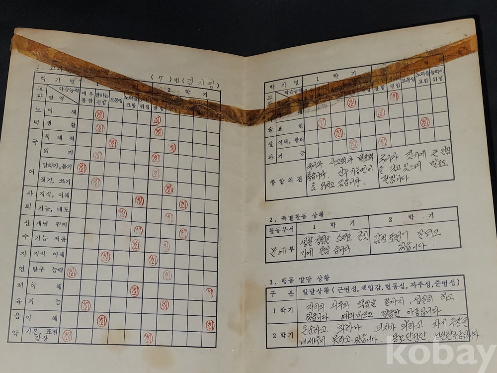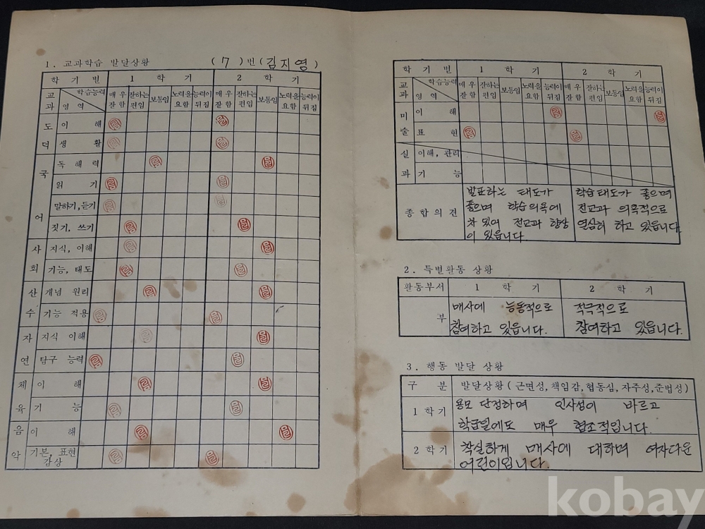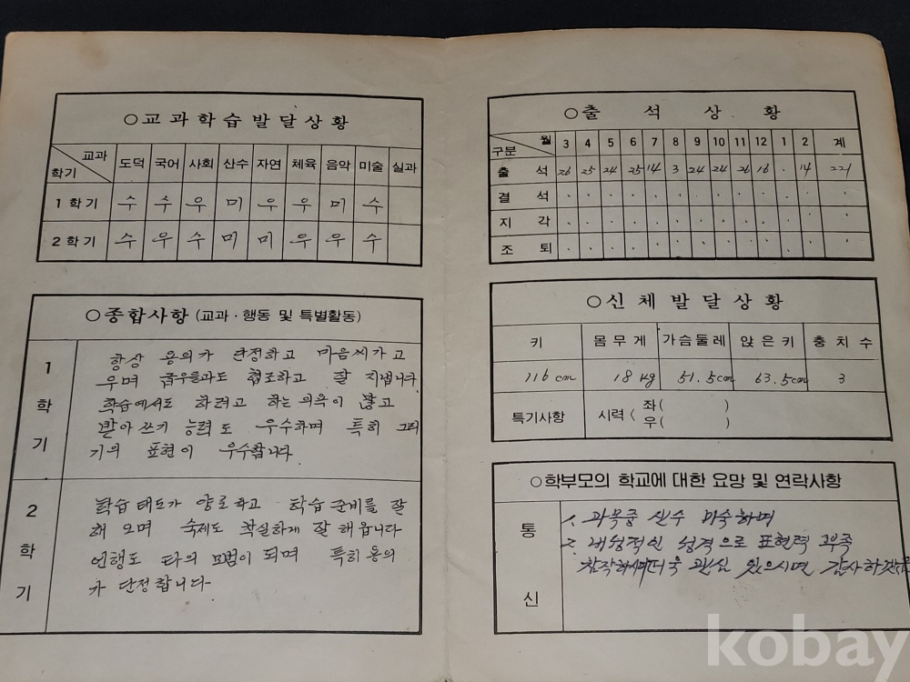 빈티지 세월 감이 느껴지는 1980년대 생활 통지표 5장 일괄입니다.