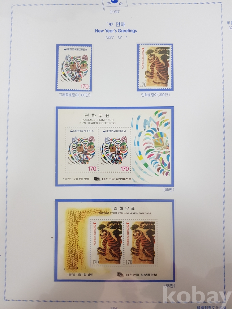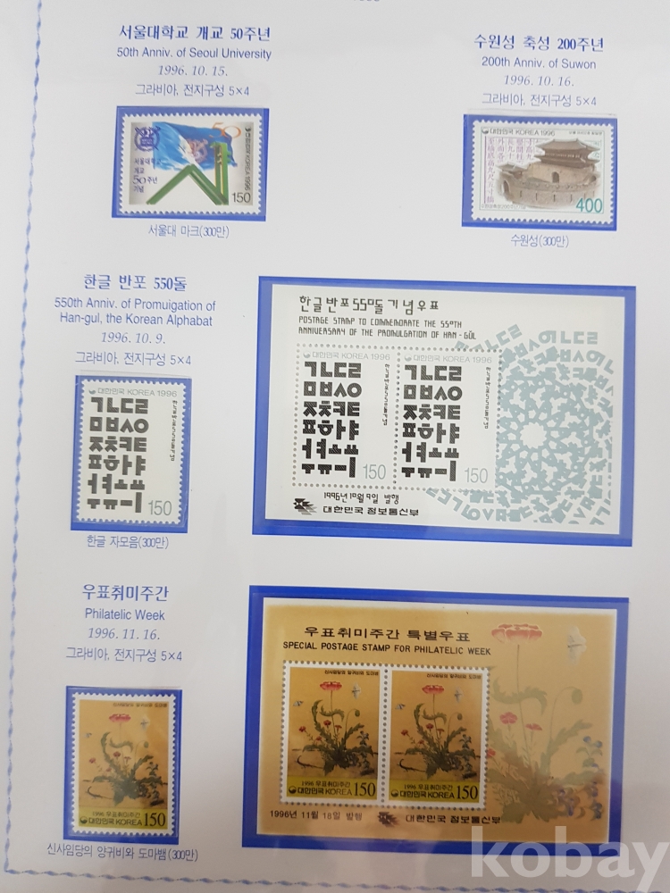 - 1996년~1999년 한국우표앨범 9번 우표책 앨범해체분 / 한국우표문화협회