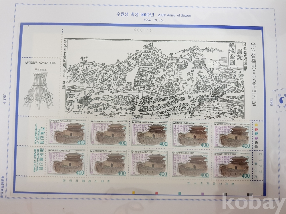 - 일부 미부착된 부분이 있을 수 있습니다. 이 경우 보유하고 계신 우표를 채워 넣어 수집하시면 더욱 완성도 있는 컬렉션을 만드실 수 있습니다.