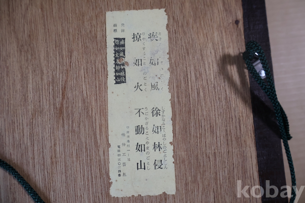 16세기 무장 신겐의 어록? 부동여산 질풍여화 등등 을 가진 귀한 명품 임니다 상자는 세월의 흔적이 보이는 명품 임니다