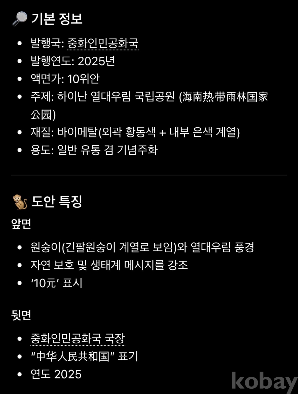 2025년 하이난 국립공원 “긴팔원숭이” 10위안 MS 68