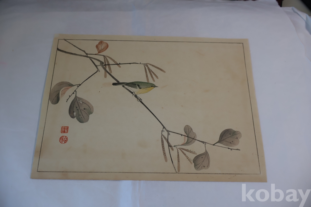 1930 대 목판화 새 임니다 아름다운 디자인 구도 섬세 함을 가진 명화 임니다 화가의 낙관이 보임니다
