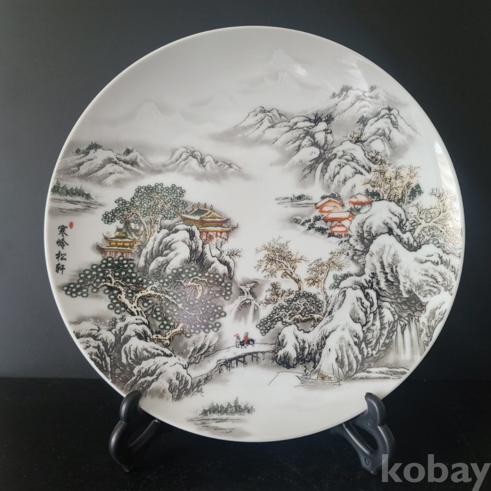 그림이 화려하게 전사된 도자기 접시입니다. 미사용 작품으로 좌대와 함께 제공되며 사이즈와 무게 모두 장식용으로 두고 보시기에 손색없는 작품입니다