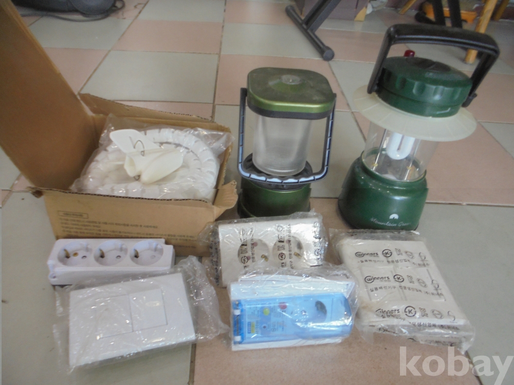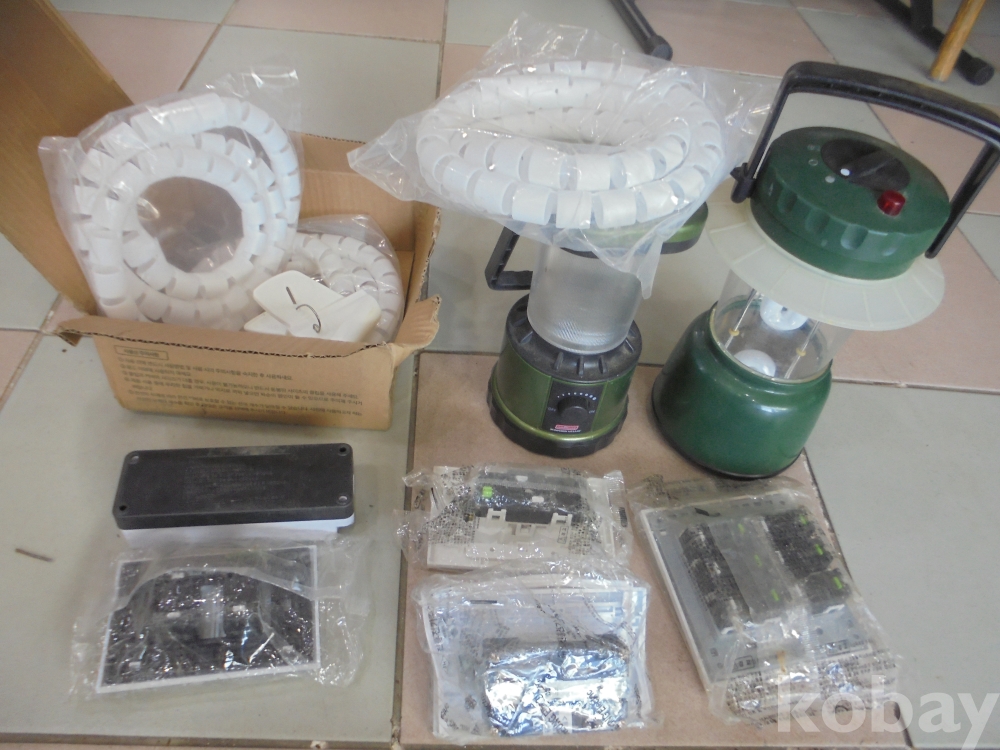 전기줄 피복하는 줄 3점1갑과 전기콘세트1.2.3구 3점과 전기스위치 2개짜리와 6개짜리 2점 (등은유리깨져 없읍)