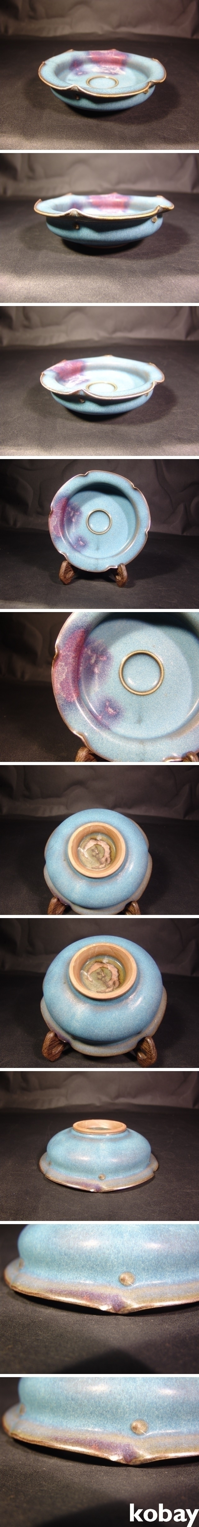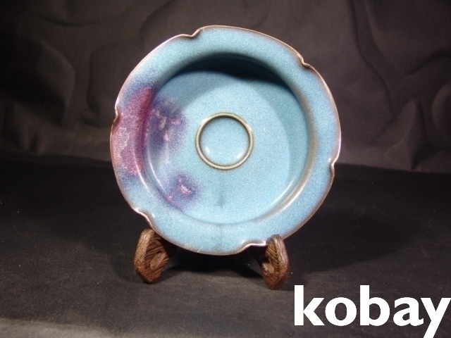 7682 균요(鈞窯) 천청유(天靑釉) 화형필세(花形筆洗) /수반(水盤)